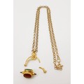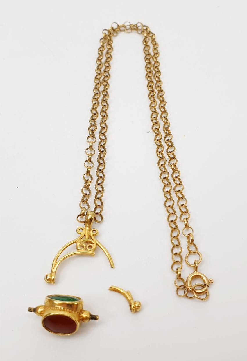 A hallmarked 9ct gold stone set swivel pendant, A/F on a hallmarked 9ct gold chain, gross weight 7g. UK shipping £14.