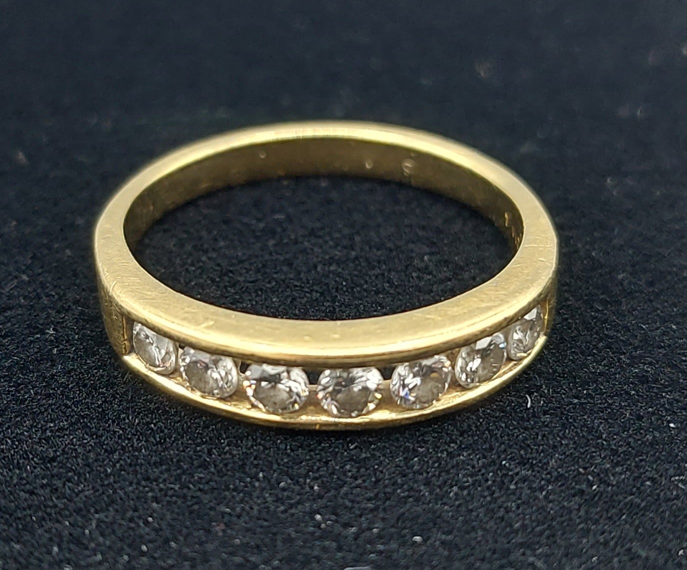 An 18ct gold seven stone Diamond ring, 4.7gms, ring size R