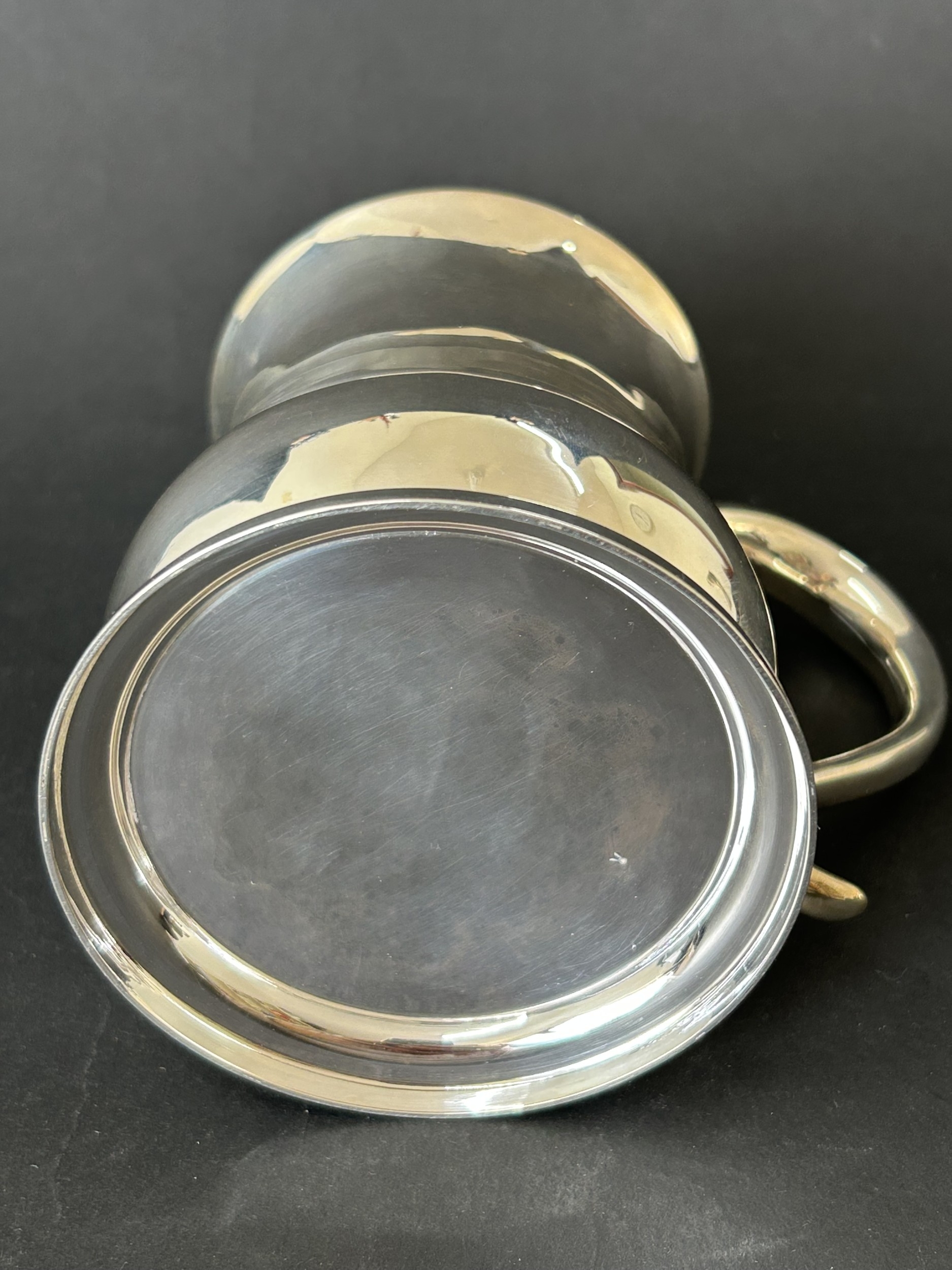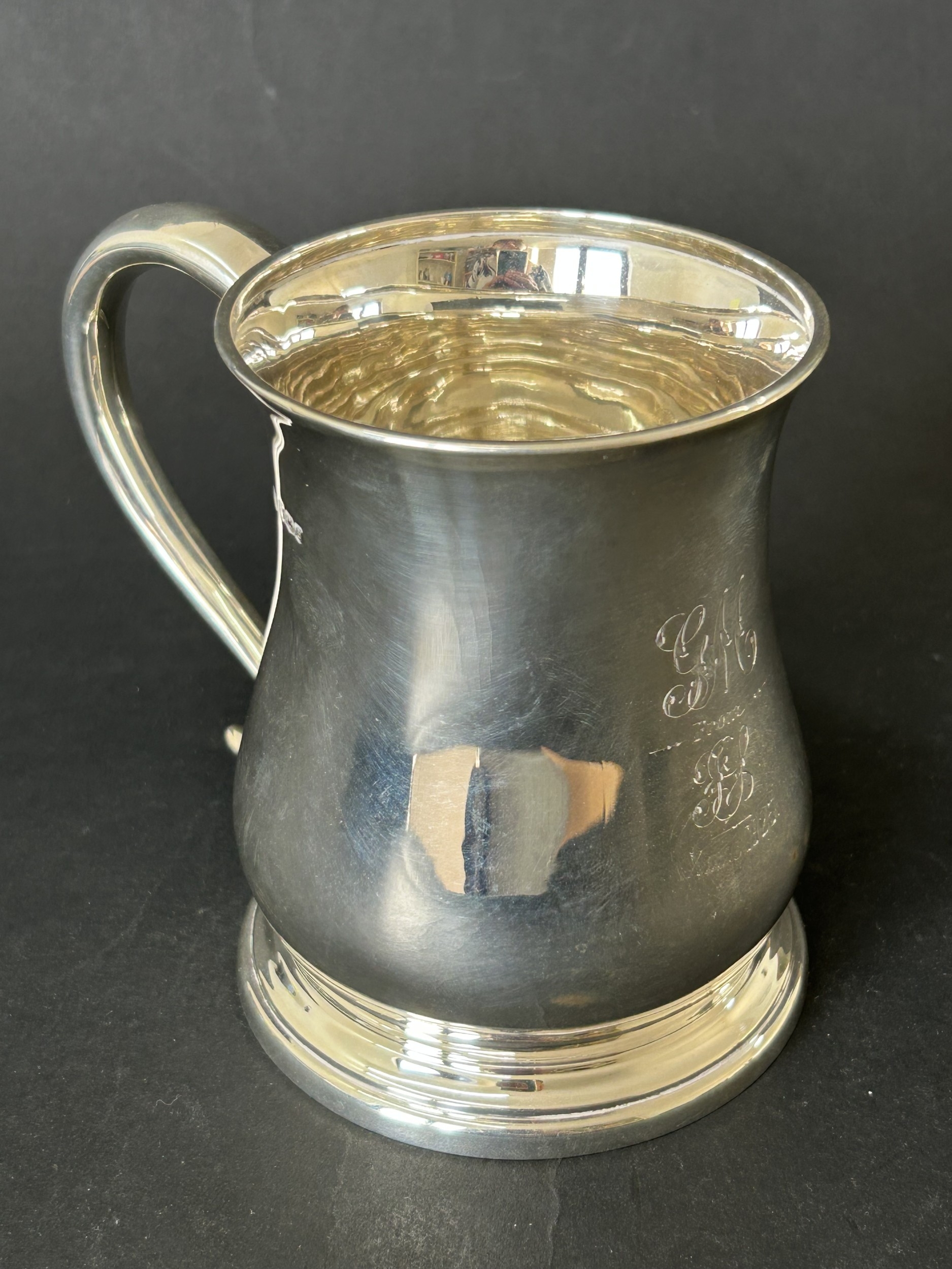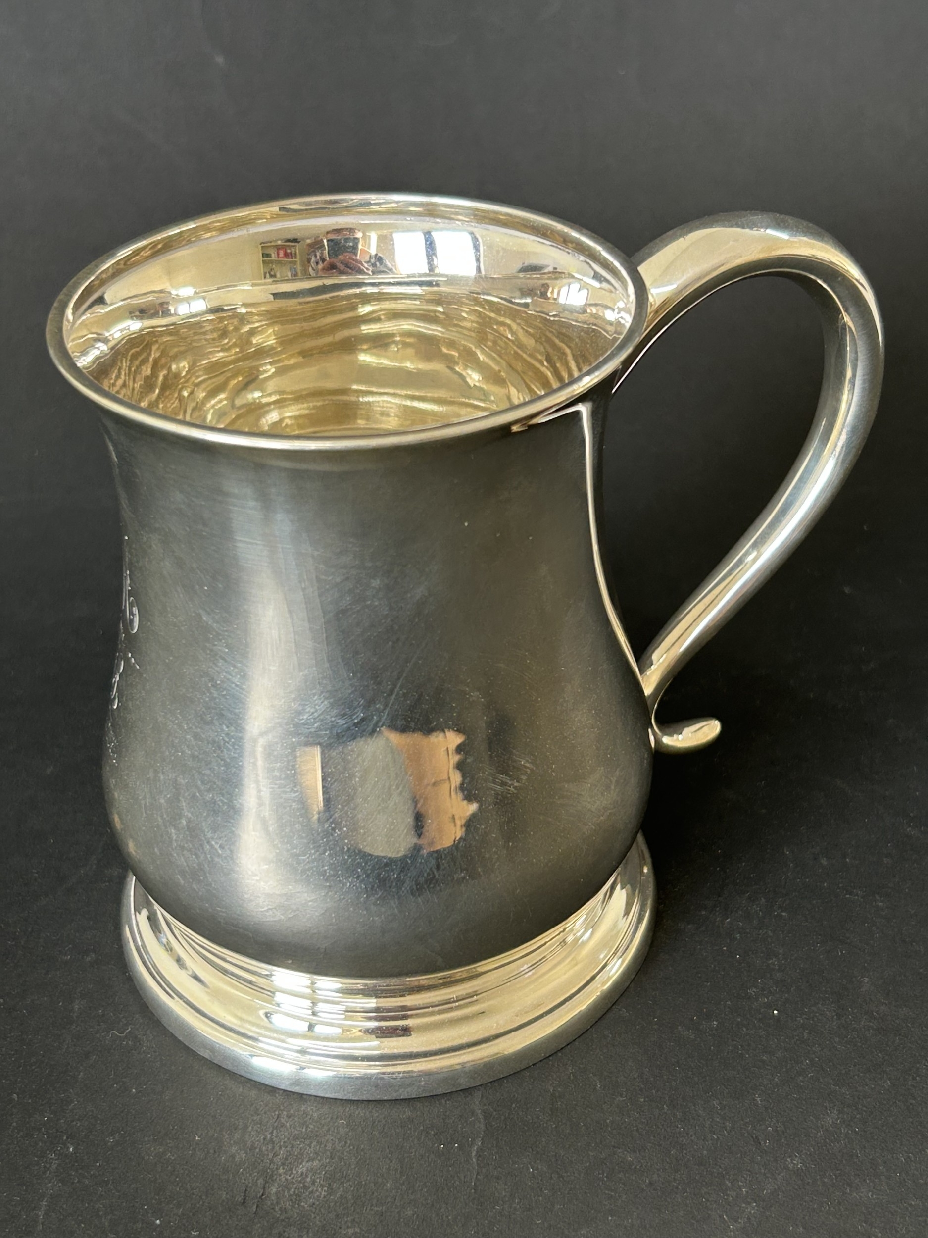 A hallmarked silver tankard, engraved to front 'GM From EB X...