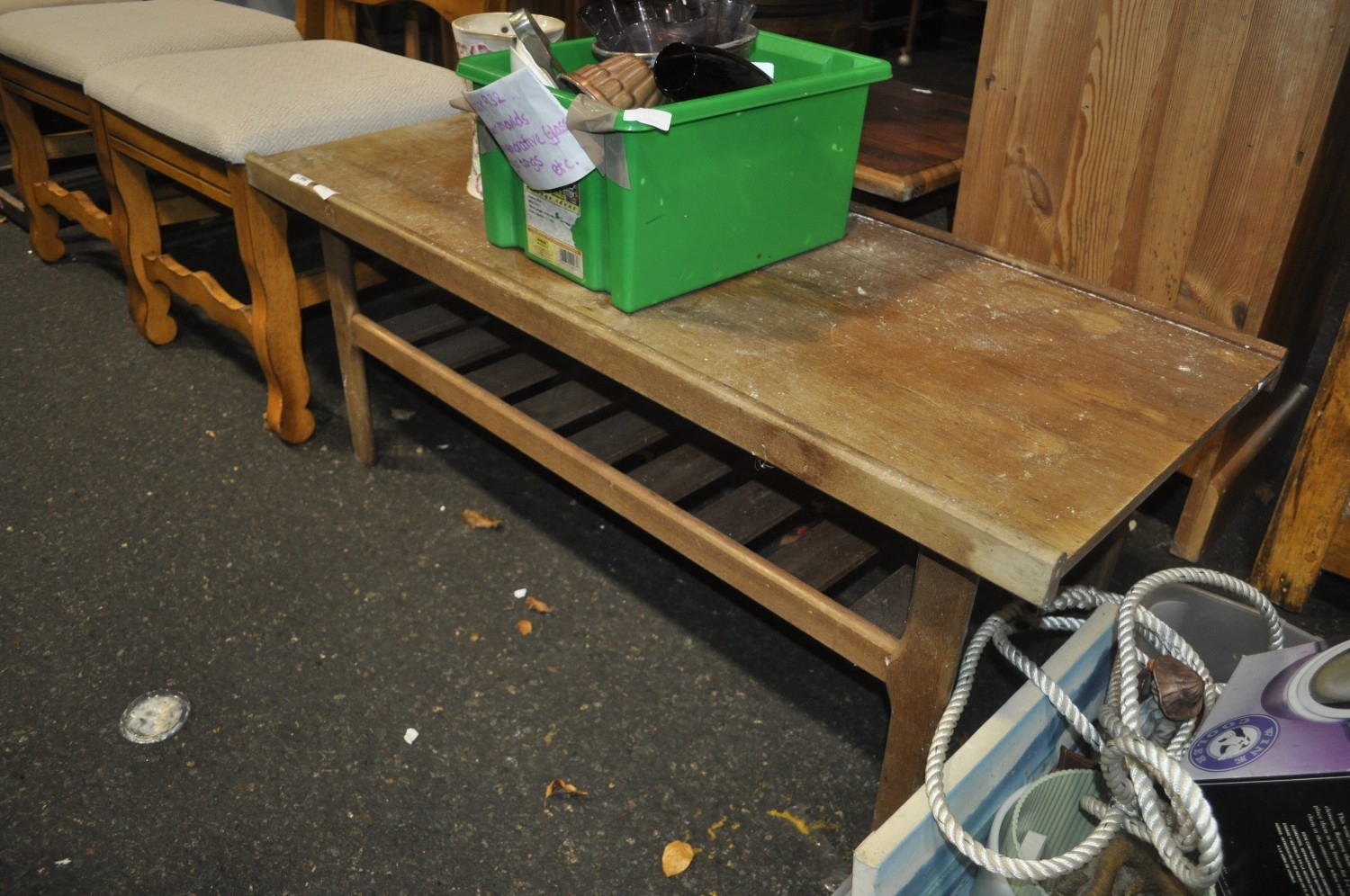 VINTAGE SLATTED SHELF TEAK COFFEE TABLE