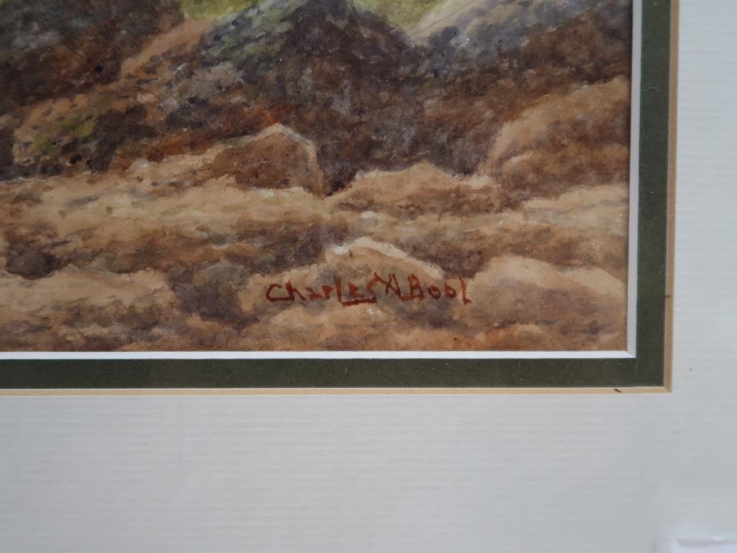 CHARLES A BOOT - NORTHERN LAKE WITH DISTANT MOUNTAIN, SIGNED WATERCOLOUR, F/G, 27CM X 36CM