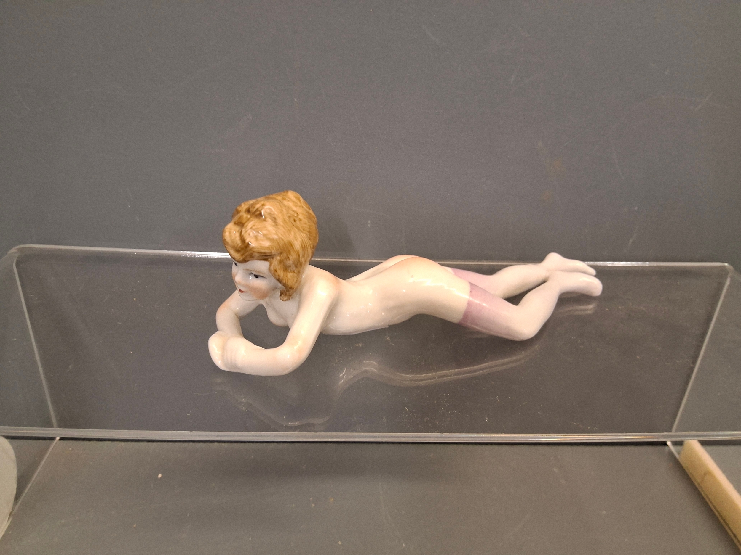 Antique Porcelain naked bathing beauty European possibly German 15cm long