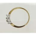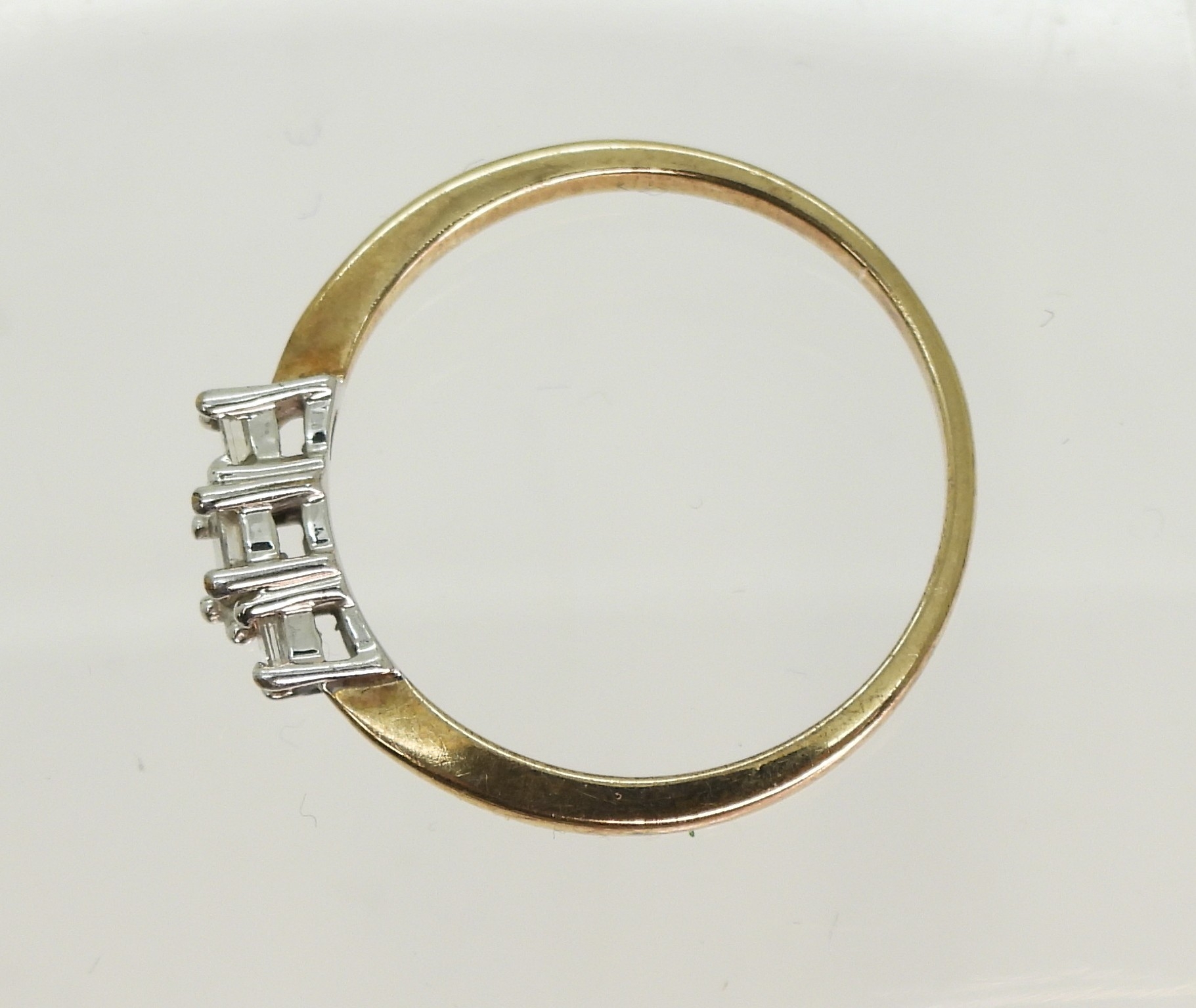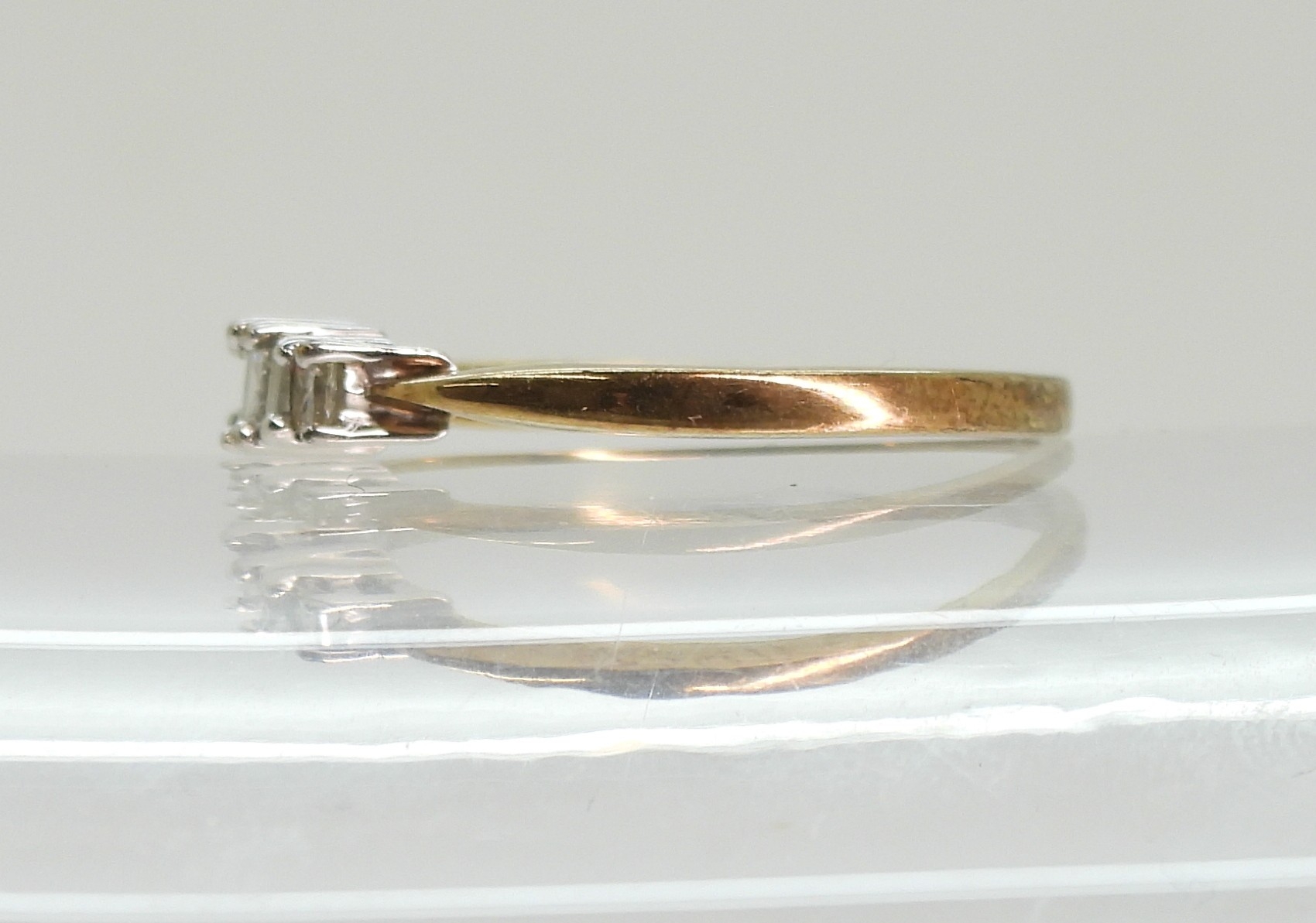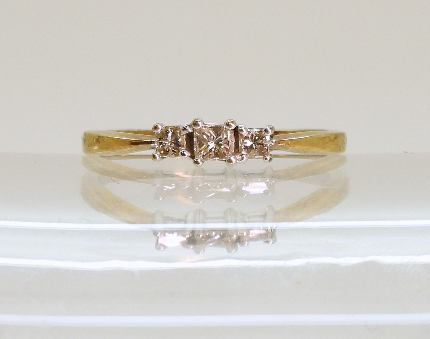 A 9ct gold three princess cut diamond ring, finger size P1/2, weight 1.7gms