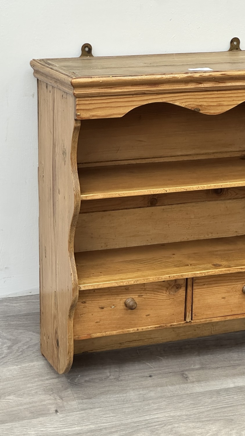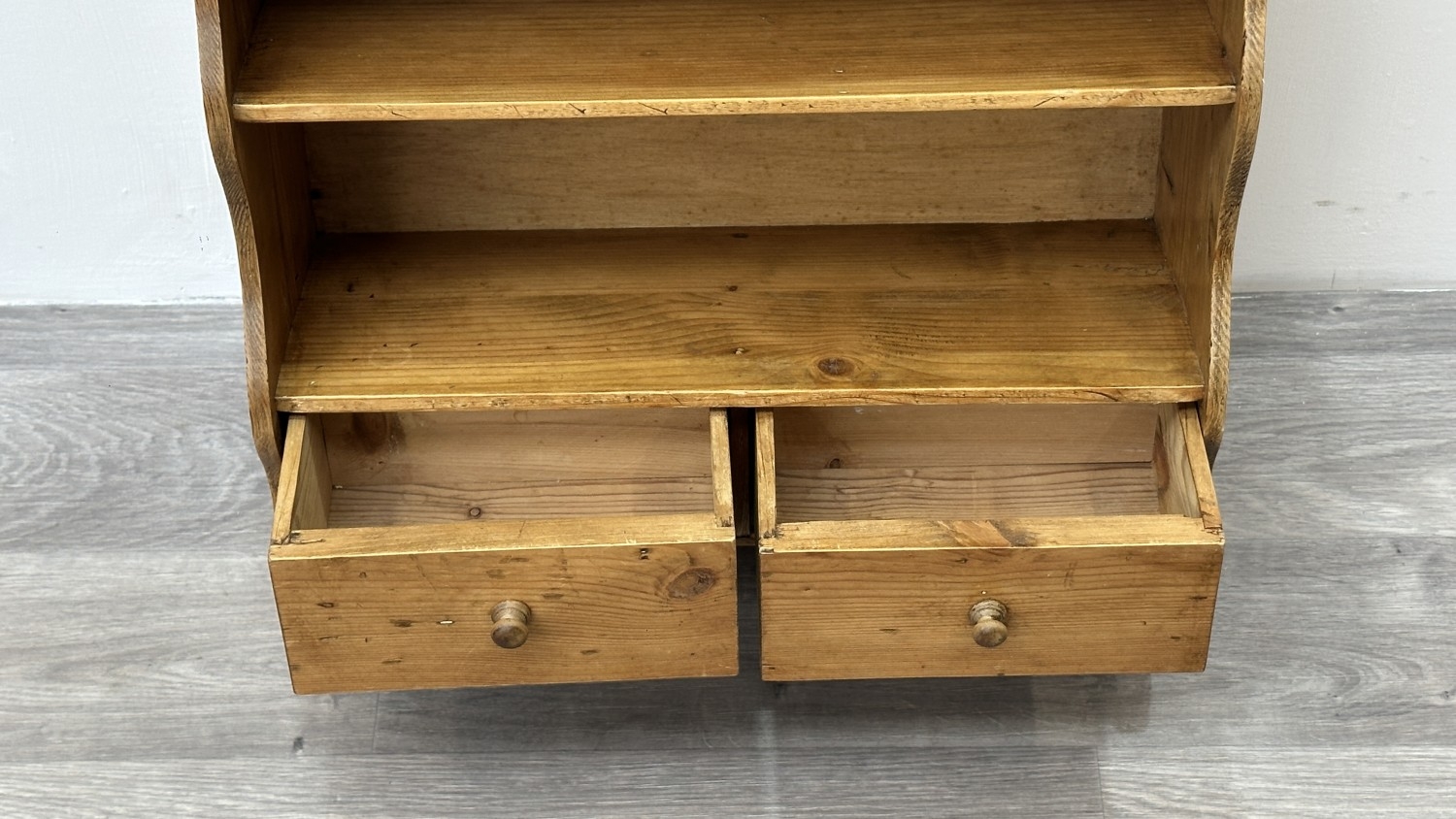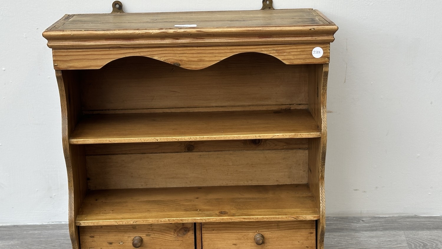 A Victorian style pine wall hanging two tier shelving unit - approx. 58cm high x 50cm wide x 22cm deep