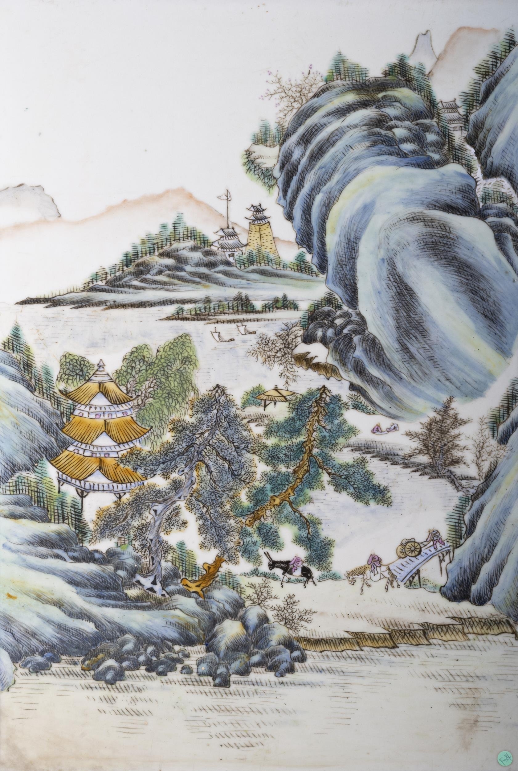 A LARGE FRAMED FAMILLE ROSE LANDSCAPE PANEL 20?? ?????? China, second half of 20th century Size: 47.2 x 32.5cm