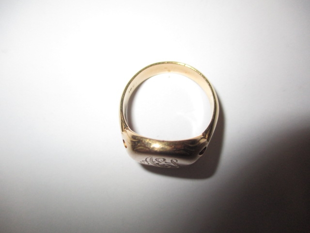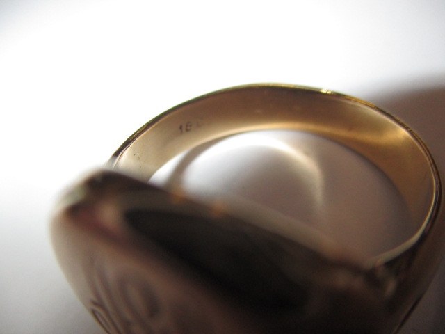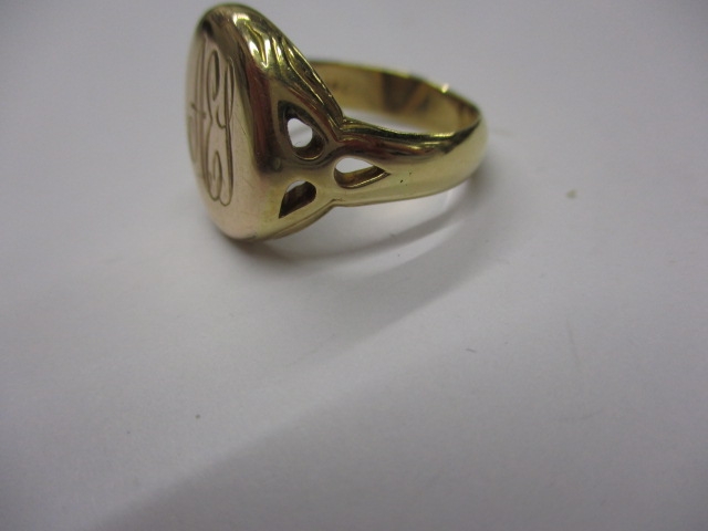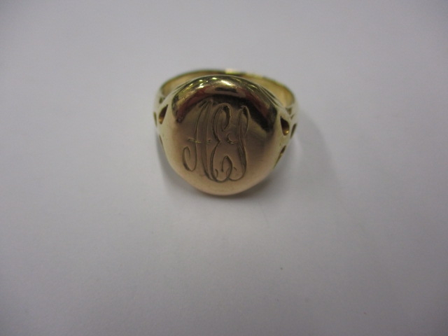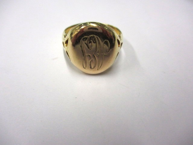 An 18ct yellow gold signet ring, approx ring size ‘Q’, approx weight 7.6g, having initials to front