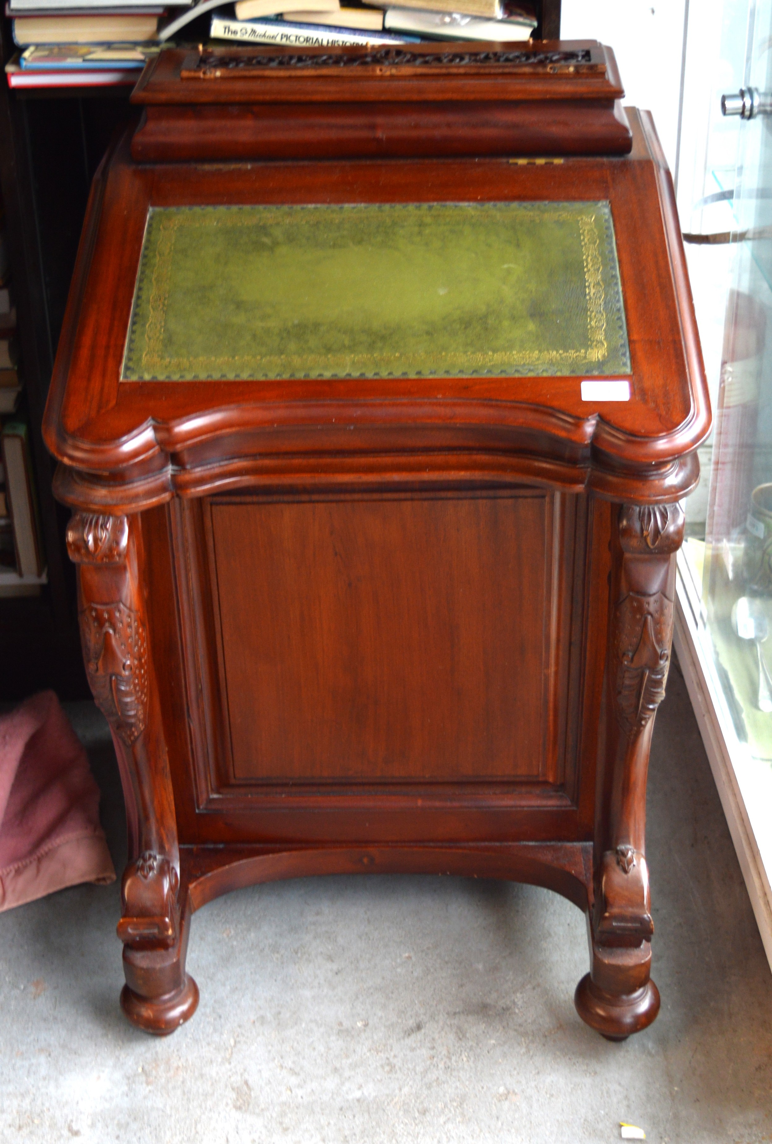 Reproduction Mahogany Davenport having Green Leather Top with Gilt Inlay