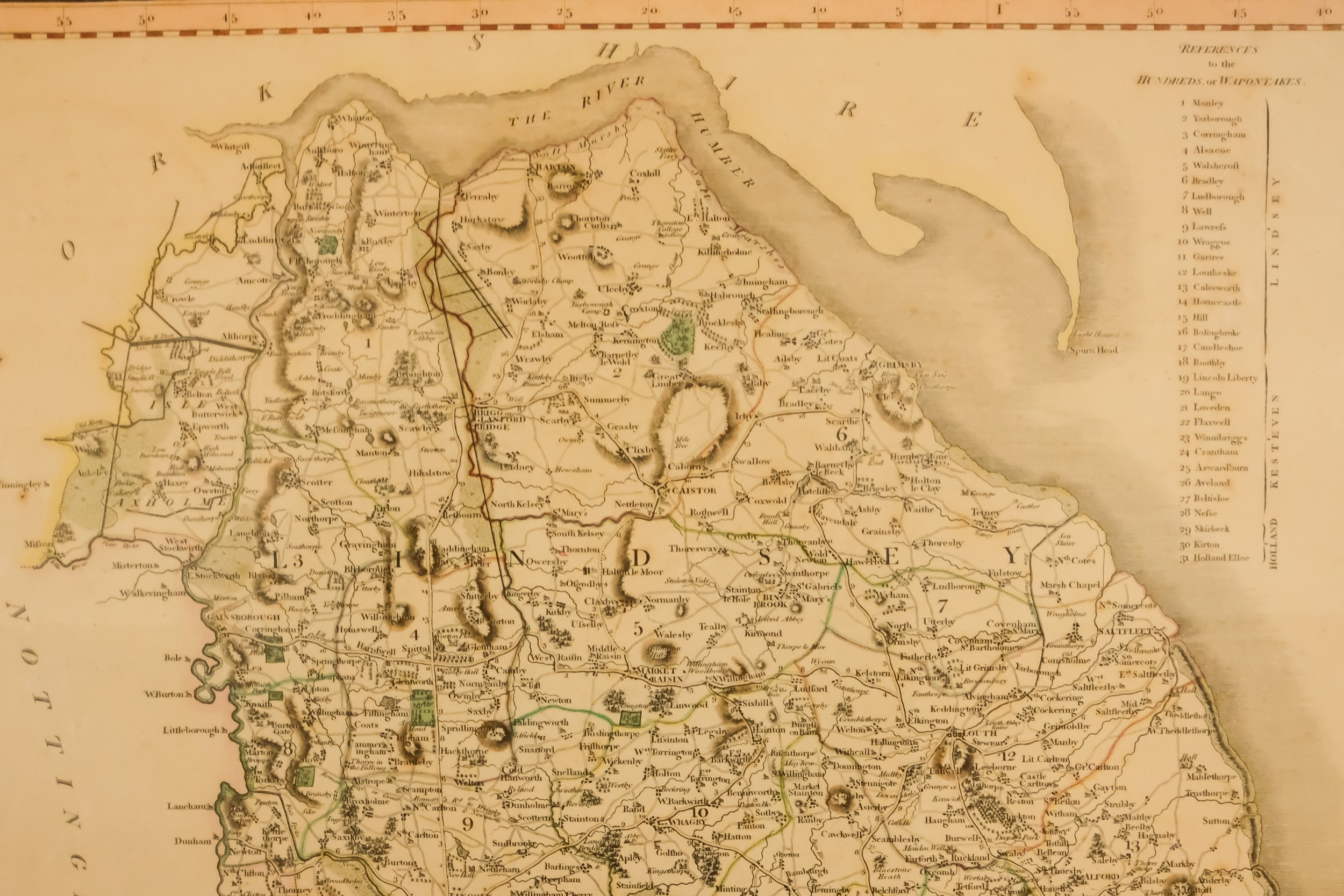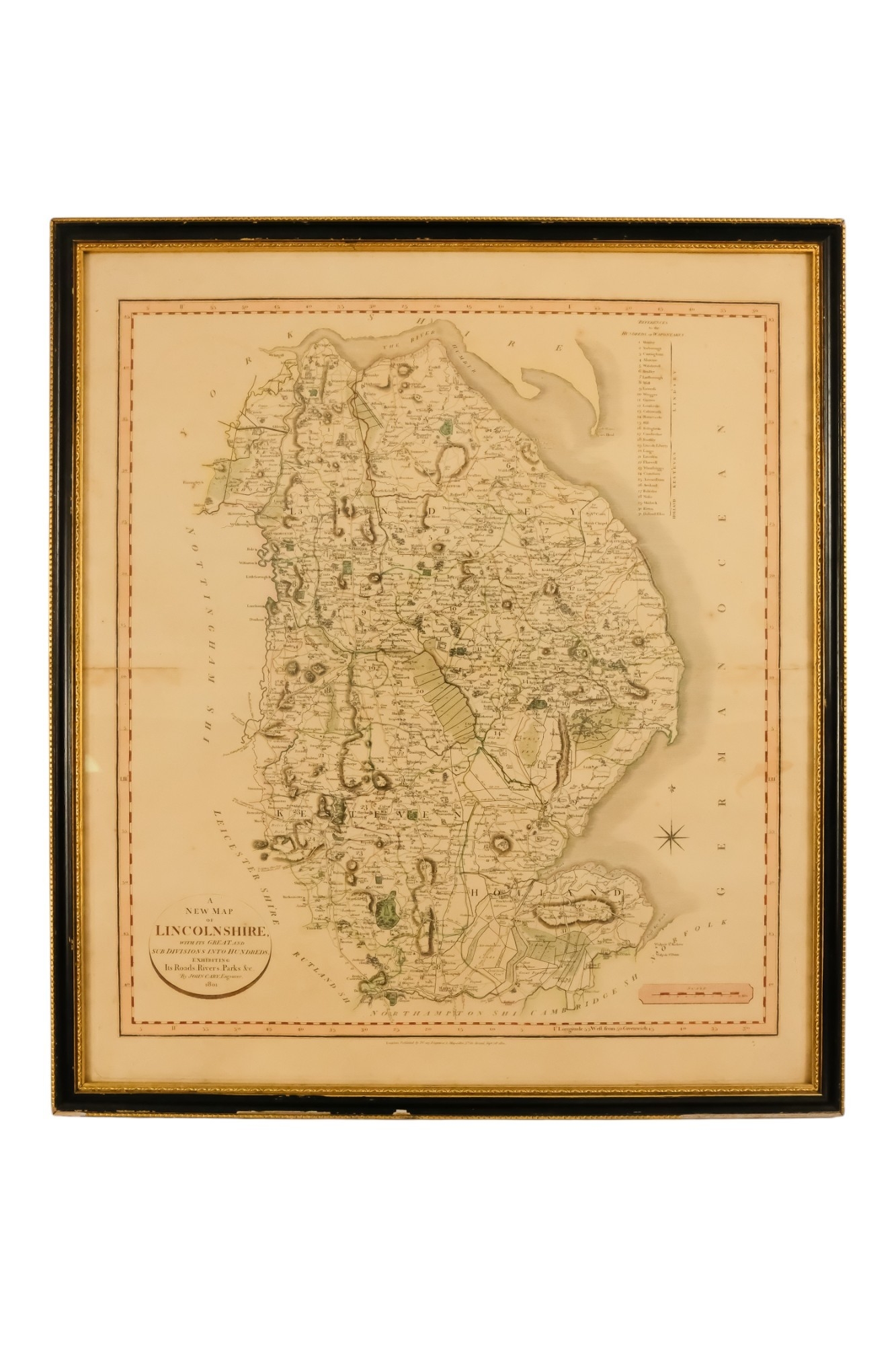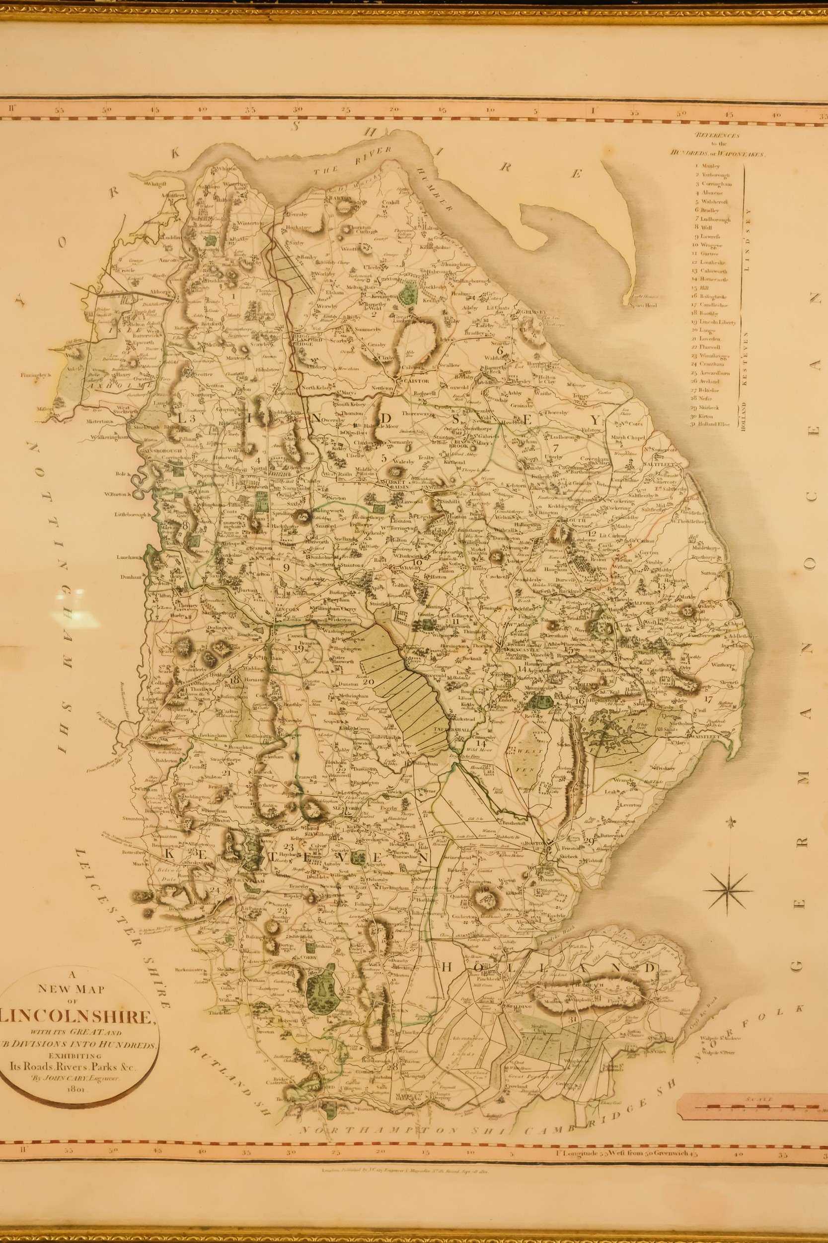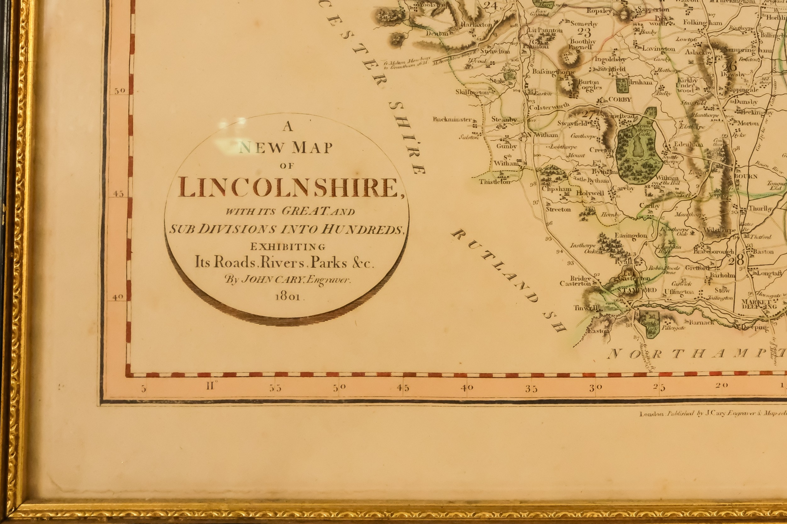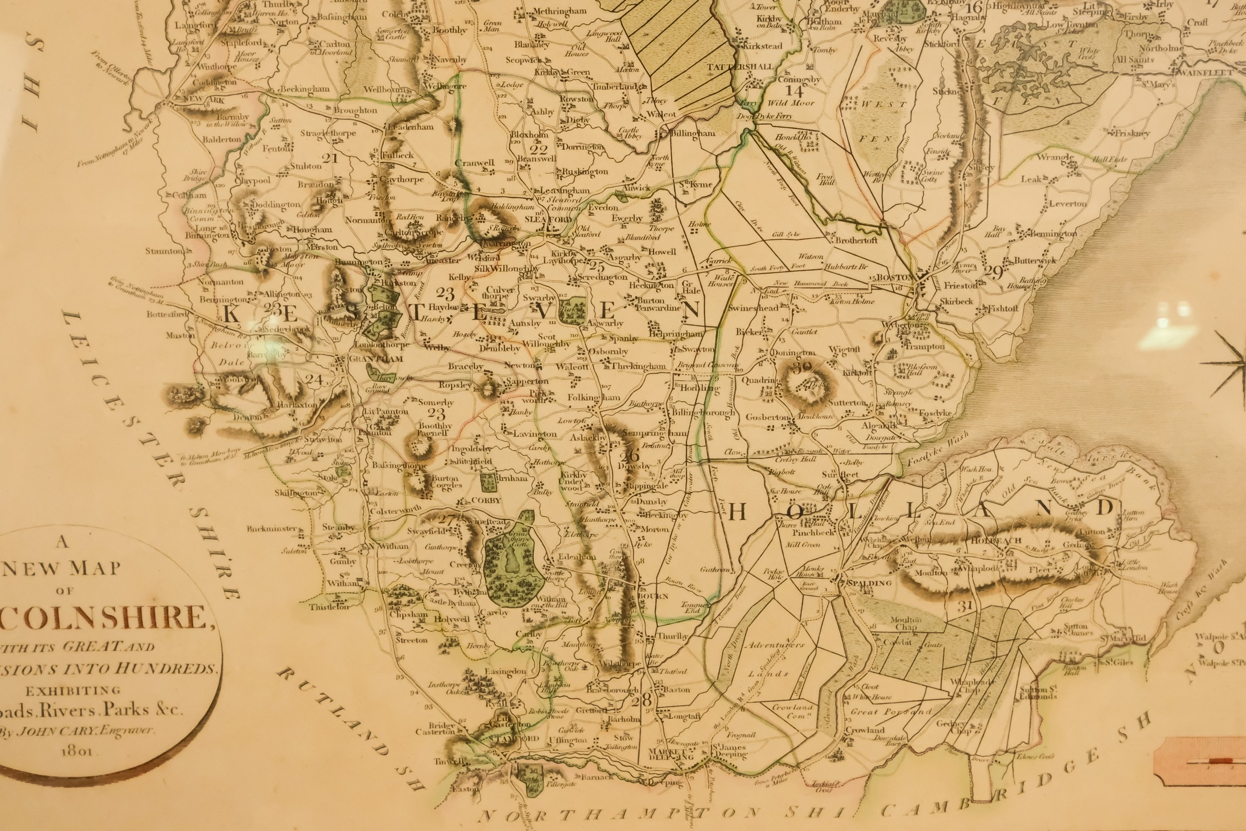 John Cary (1754-1835) A New Map of Lincolnshire - engraved with hand colouring, with its Great and Sub Divisions Into Hundreds, dated 1801, 65 x 57cm.
