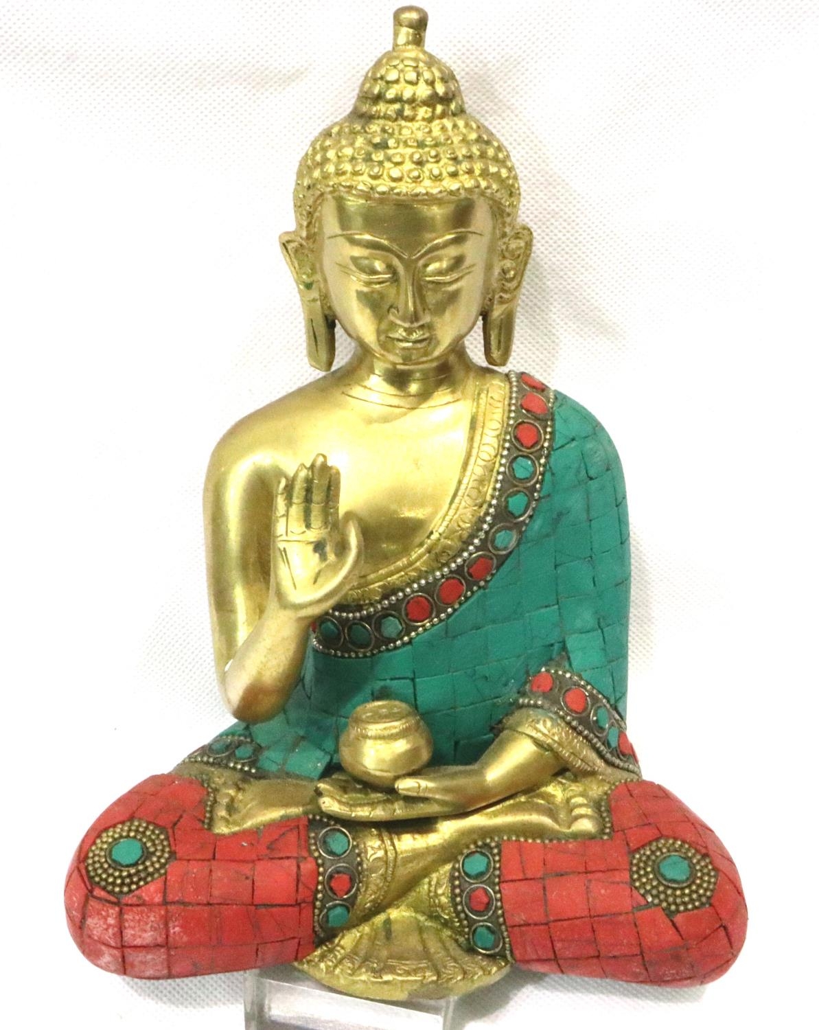 Ethnic painted brass Buddha, H: 20 cm. P&P Group 2 (£18+VAT for the first lot and £3+VAT for subsequent lots)