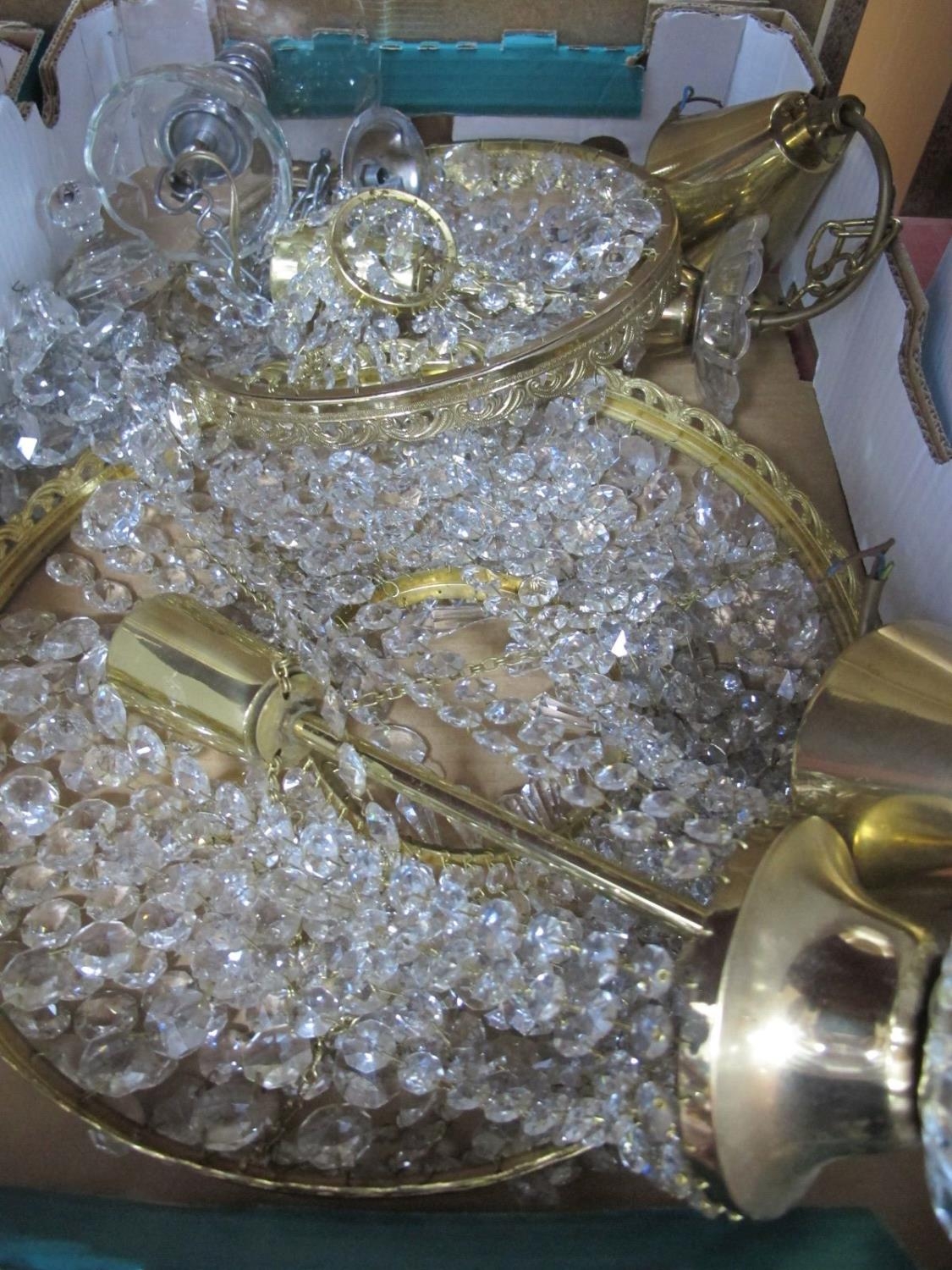 Two Bag Style Chandeliers, with faceted drops; one other incomplete.