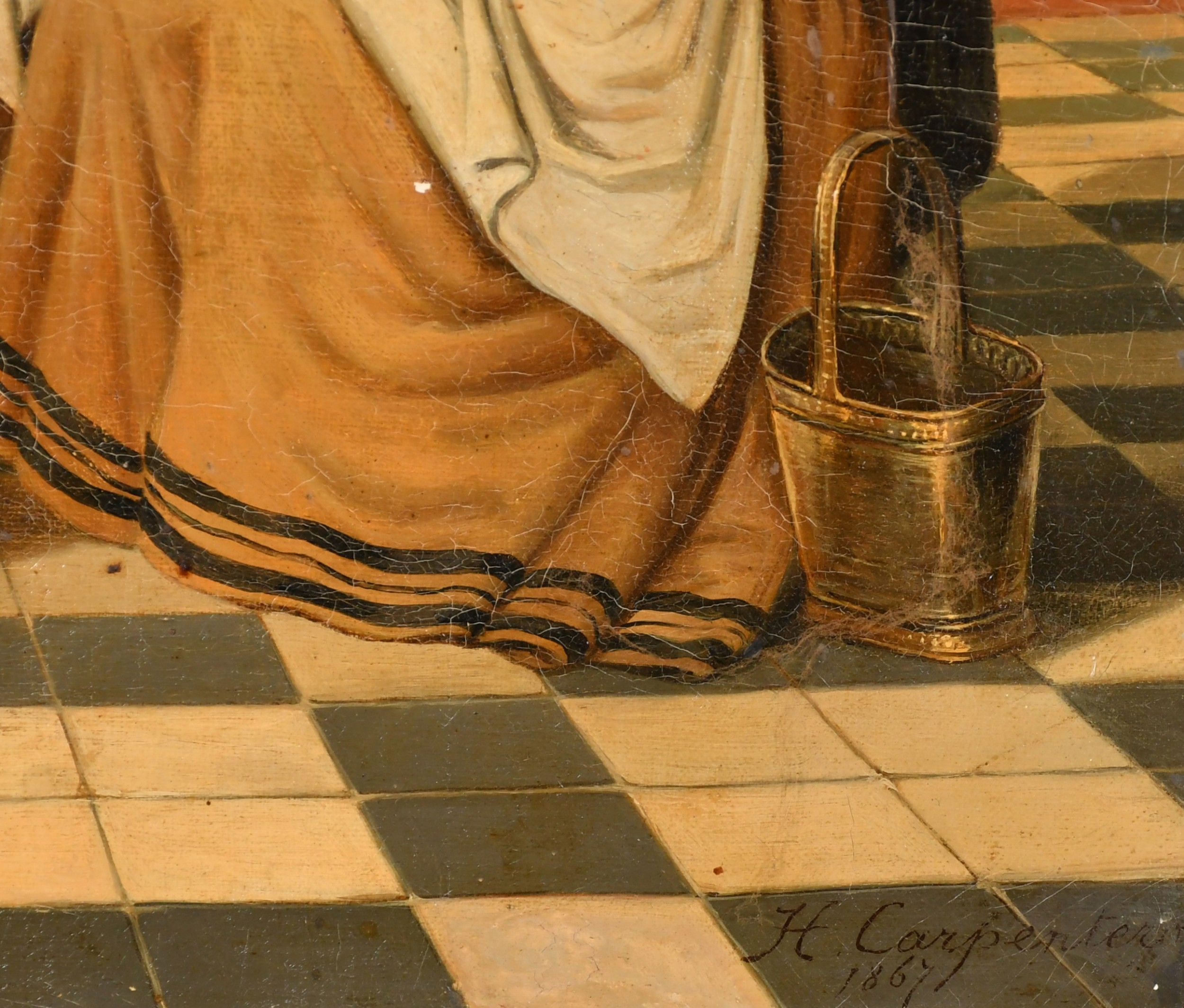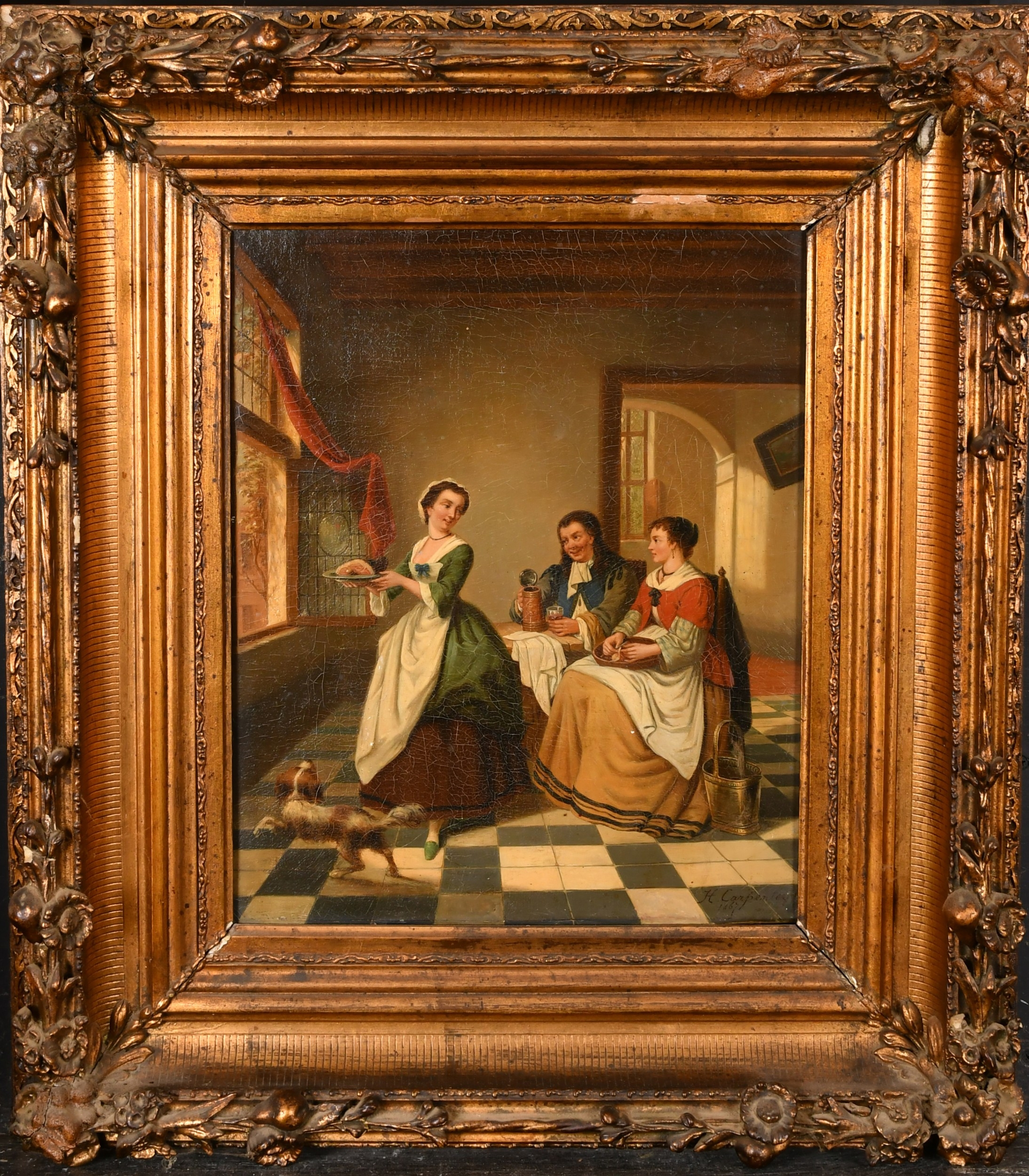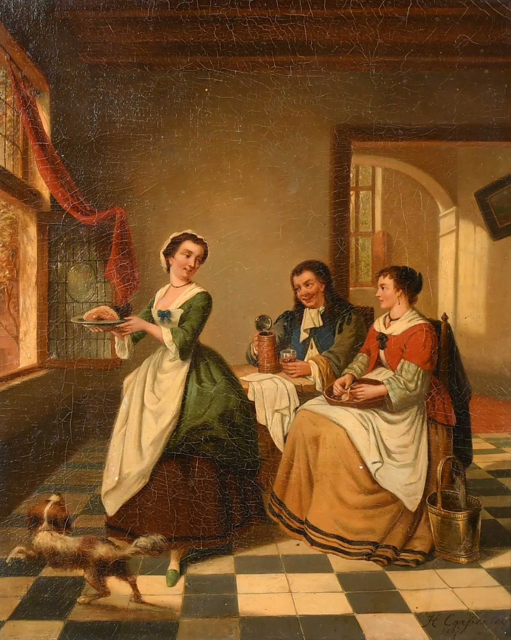R Carpenter (19th Century) European. Serving Lunch, Oil on canvas, Signed and dated 1867, 18.25" x 14.75" (48.3 x 37.5cm)
