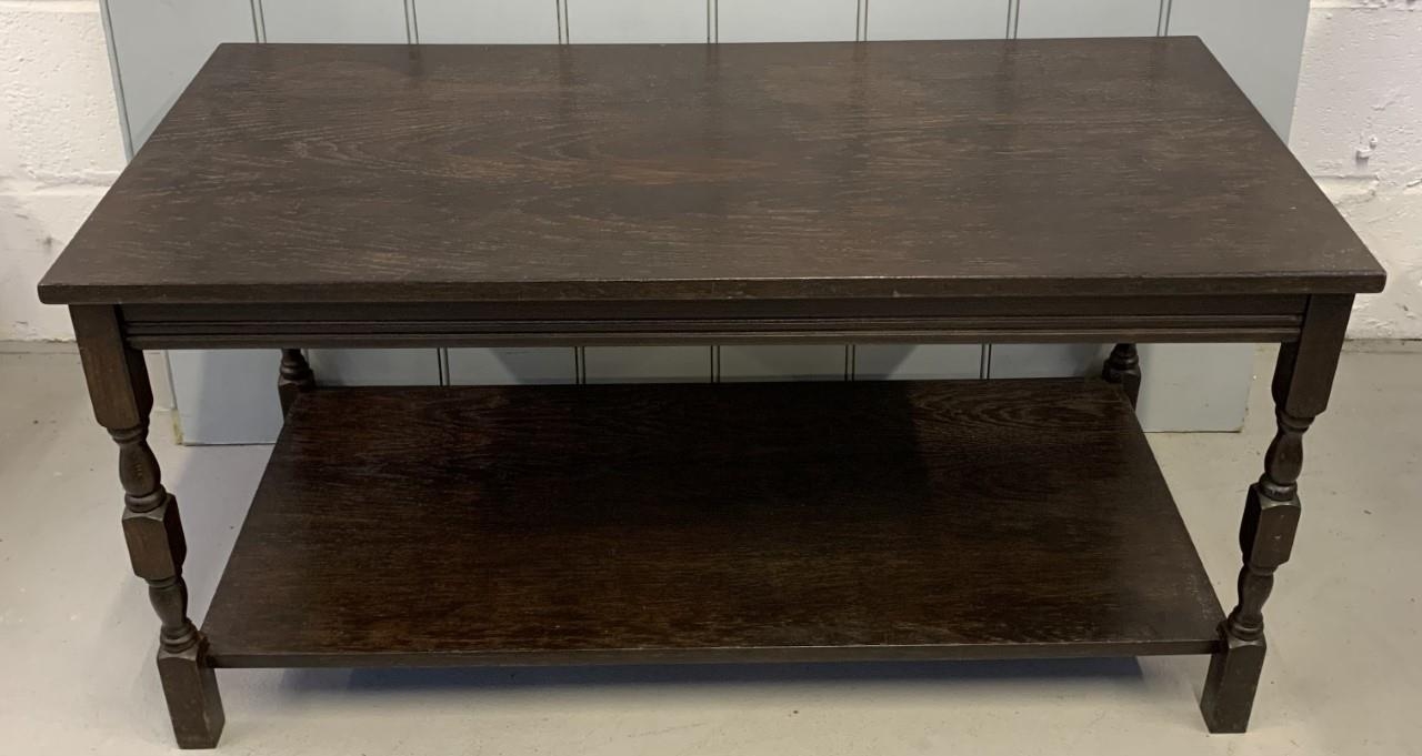 A mid-century, dark-oak, coffee table. Dimensions(cm) H49, W97, D46.