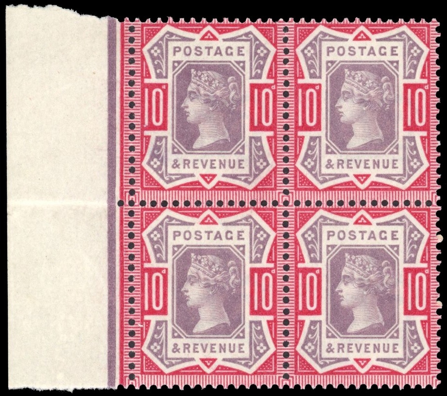 10d Jubilee dull purple and carmine left-hand marginal block of four, horizontally folded otherwise fine and fresh full o.g.