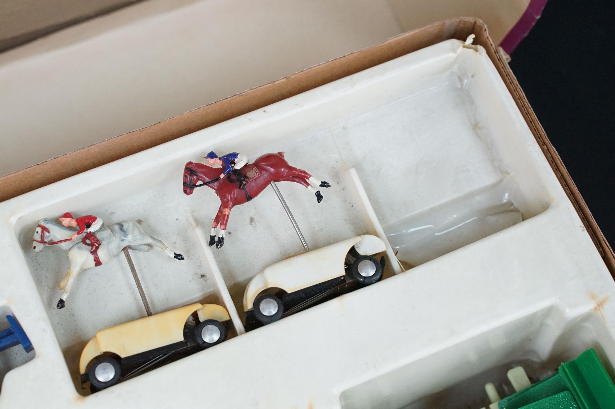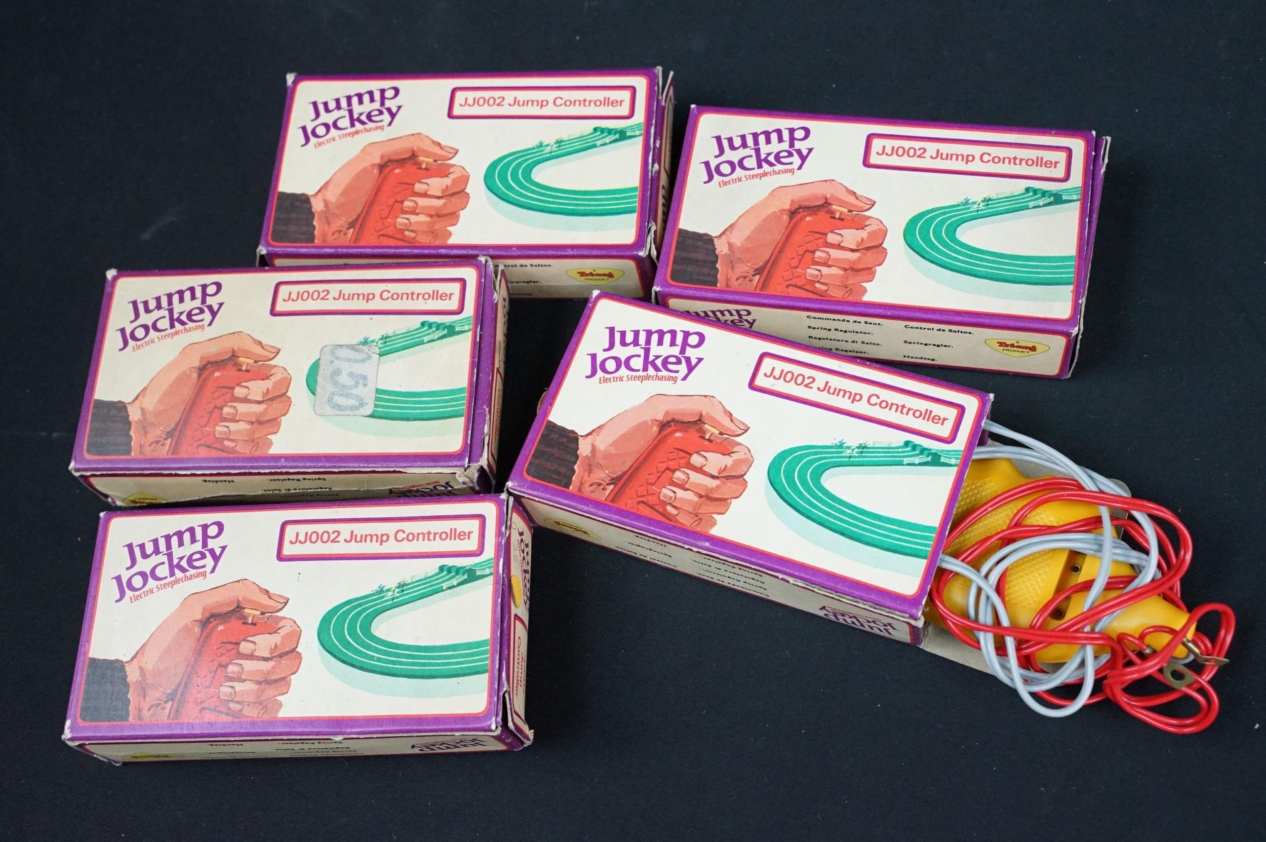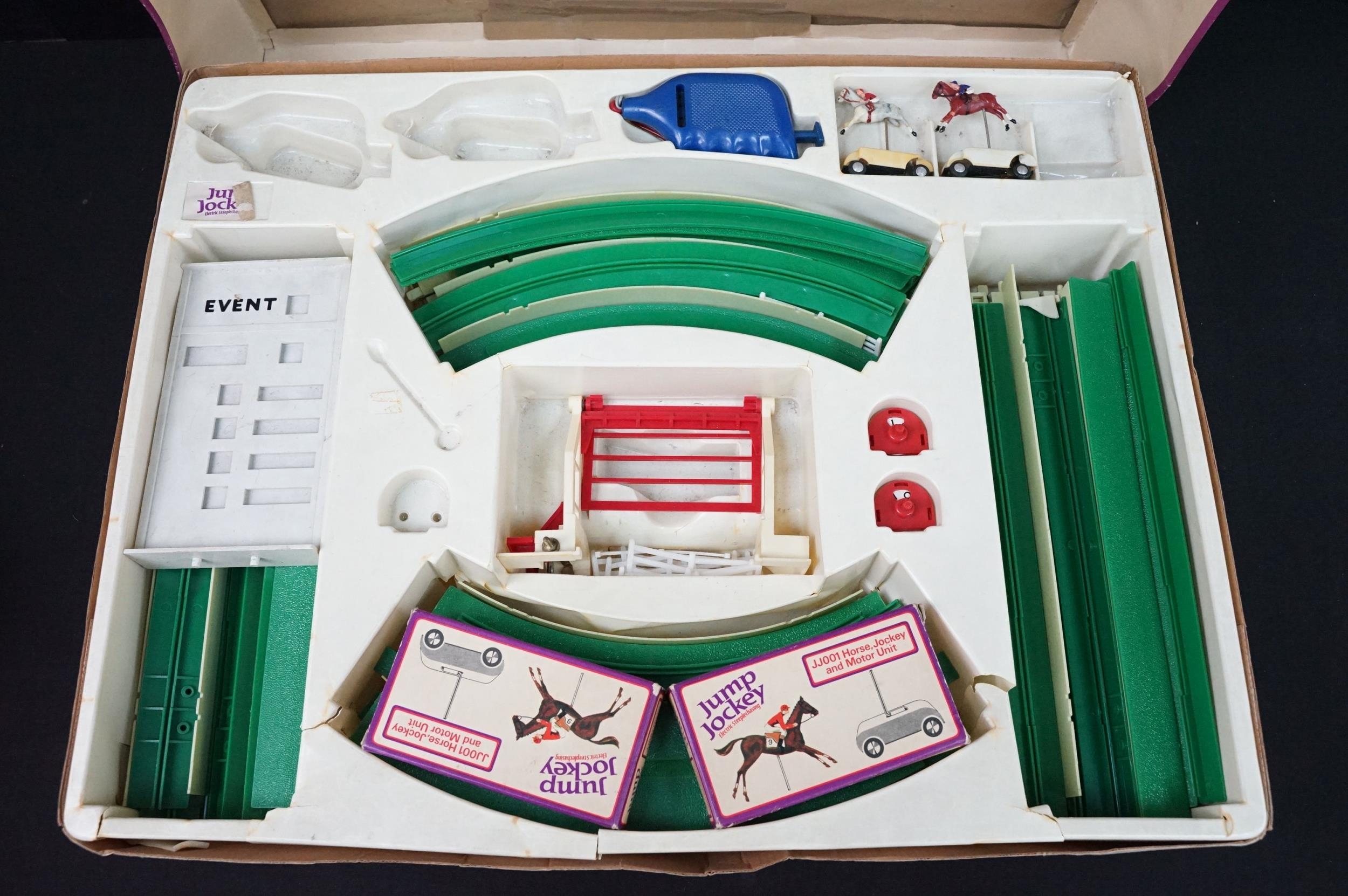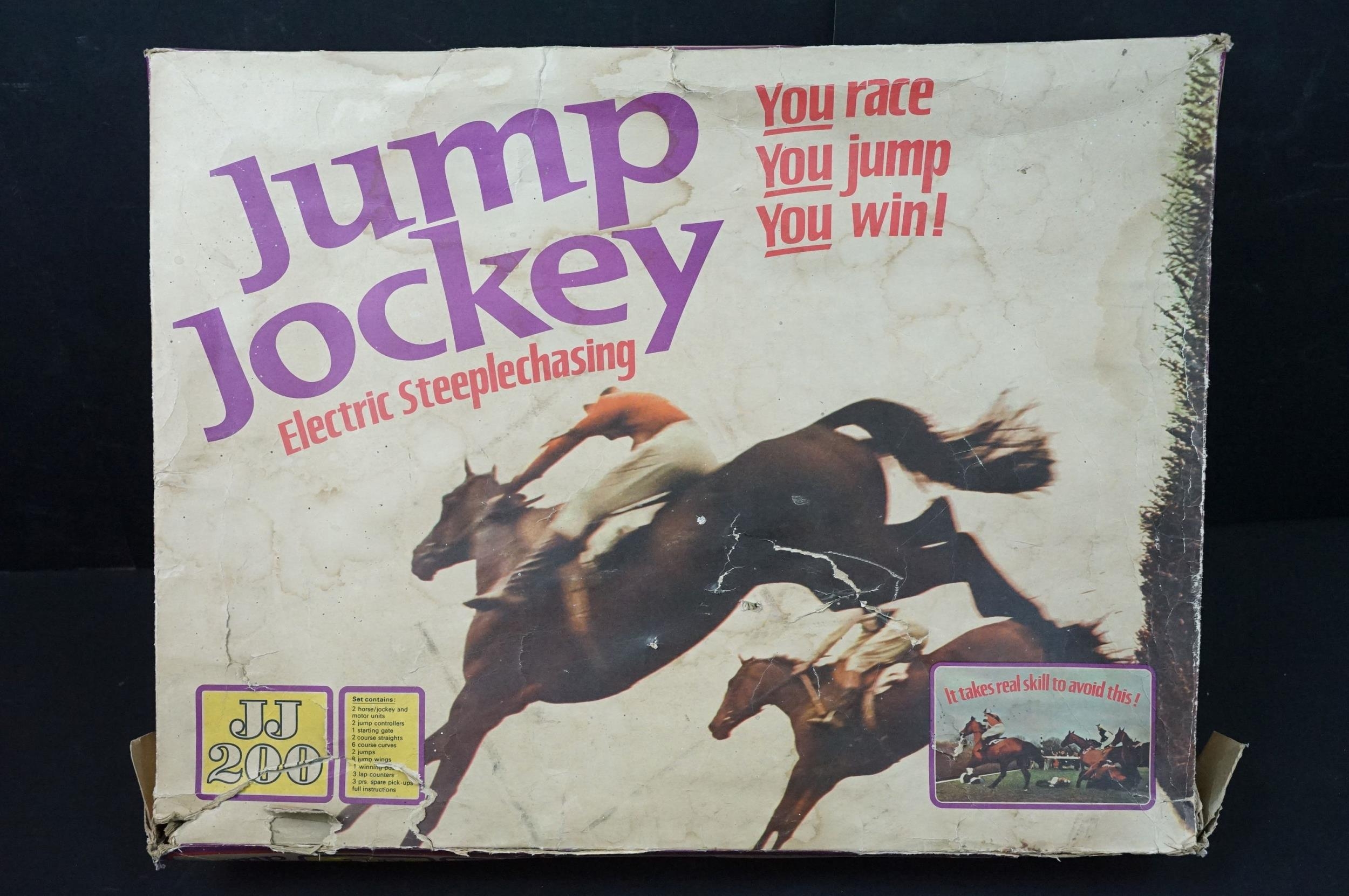 Collection of boxed Triang Jump Jockey Electric Steeplechasing to include JJ200 Set (missing 1 x horse and 2 x controllers), and 15 x accessories featuring 2 X JJ001 Horse, Jockey and Motor Unit, 5 x JJ002 Jump Controller, 4 x JJ006 Jump and 4 x JJ004 Course Straights