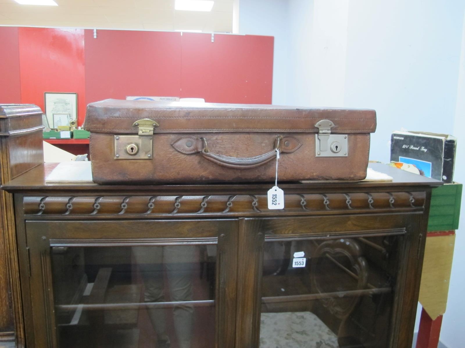 An Early XX Century Heavy Gauge Leather Suitcase, approx 61cm wide.