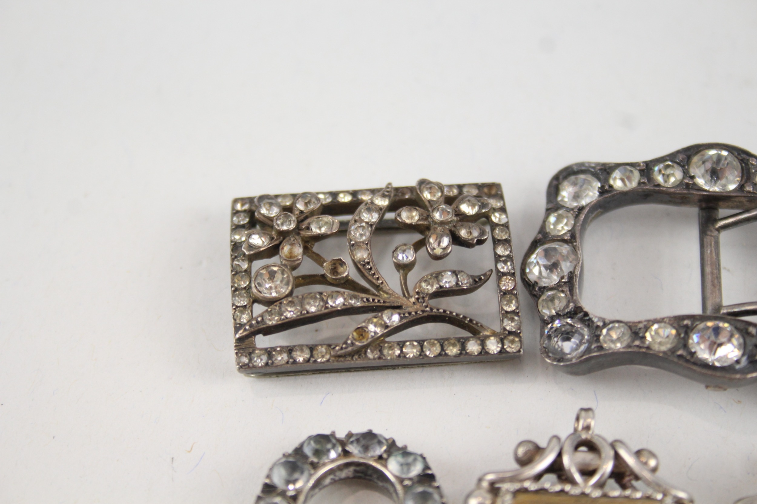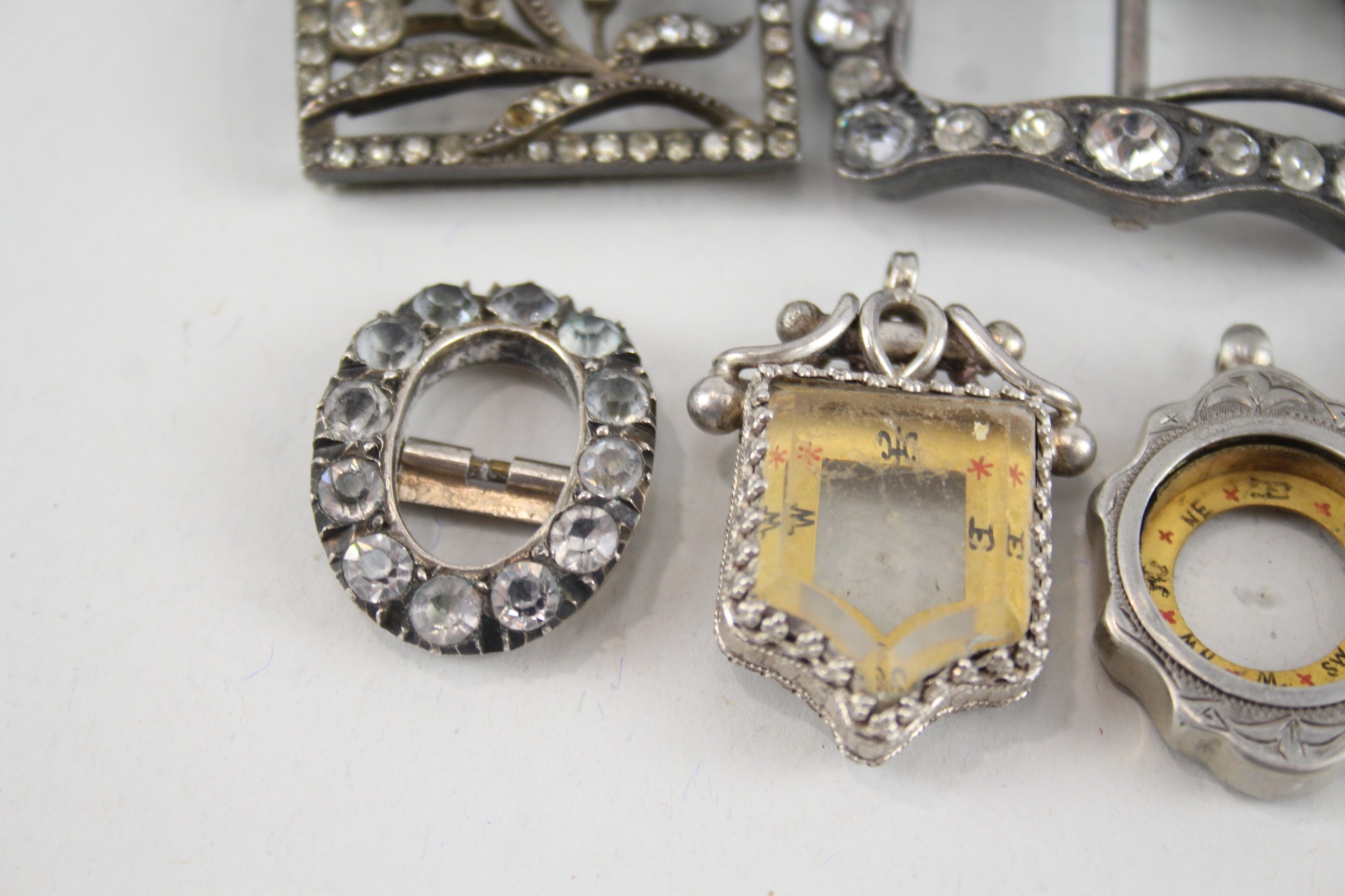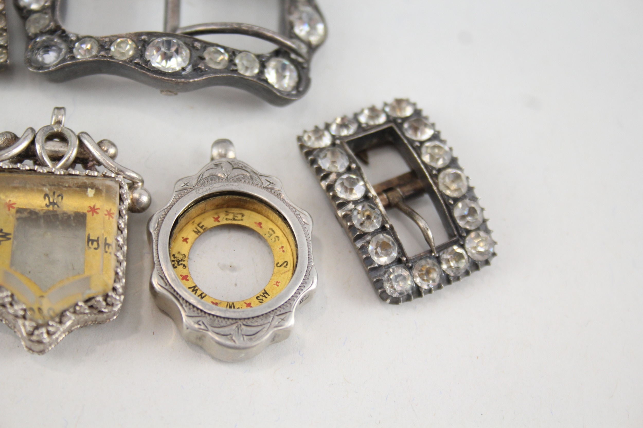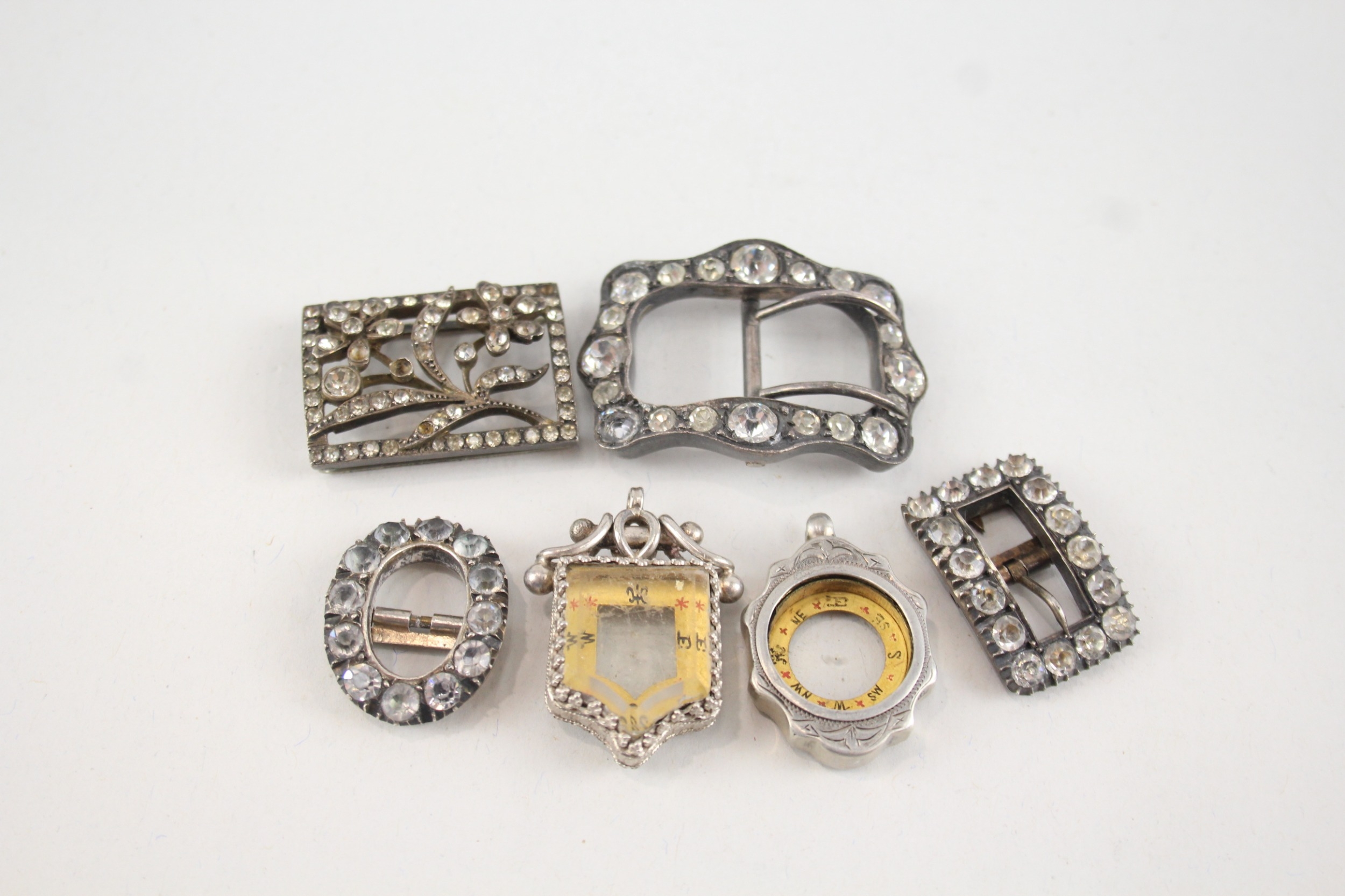6 x Antique / Vintage Buckles & Compasses Inc .925 Sterling, 800, .950, Plate