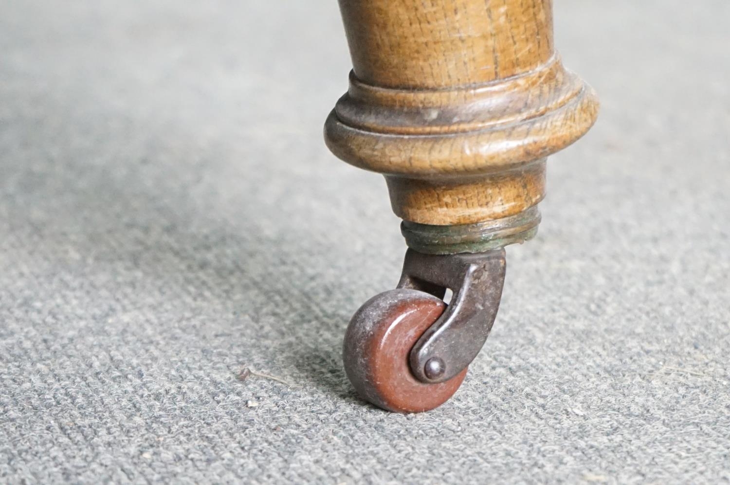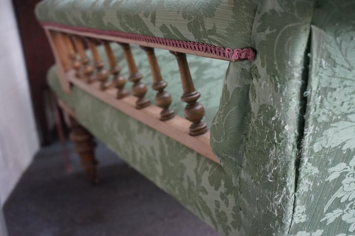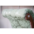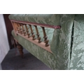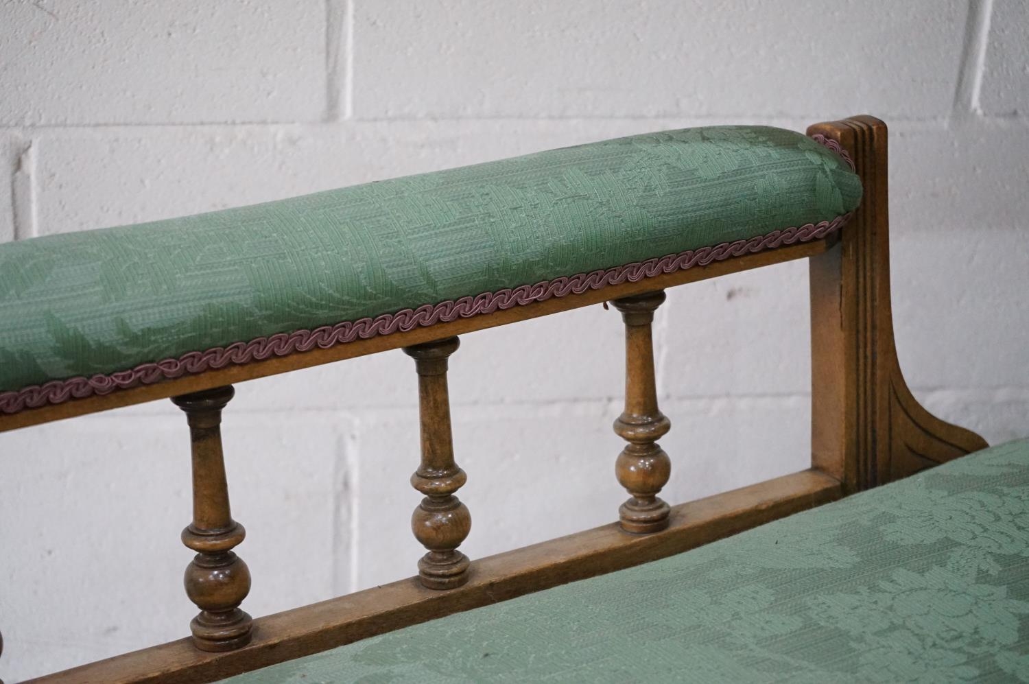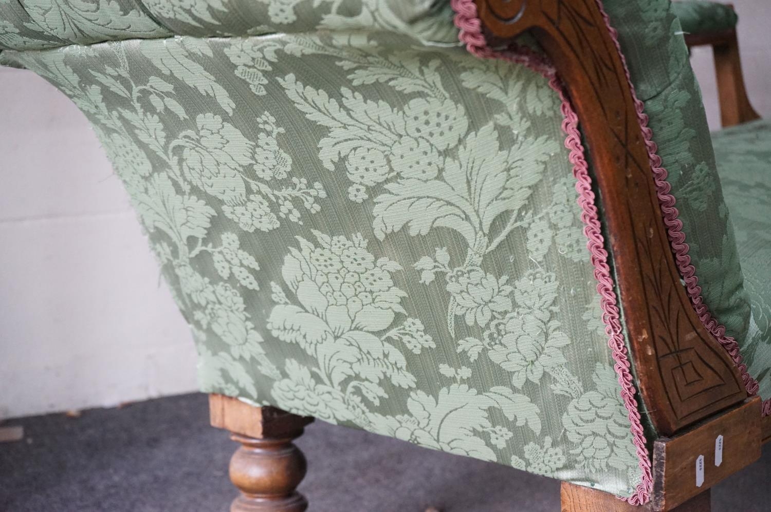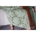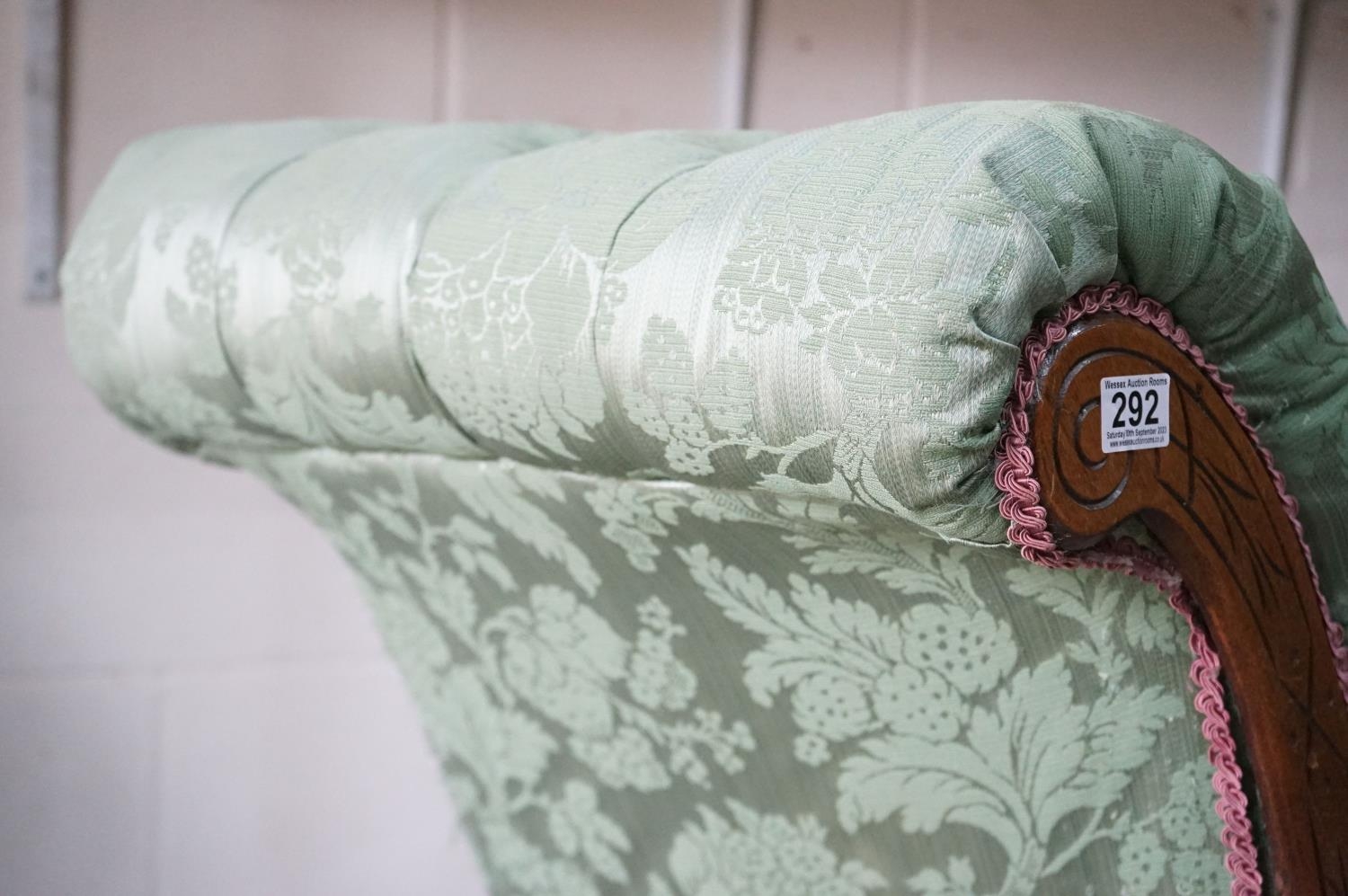 Victorian Walnut Framed Chaise-lounge with green button back upholstery, raised on turned legs with castors, 180cm long x 78cm high