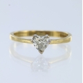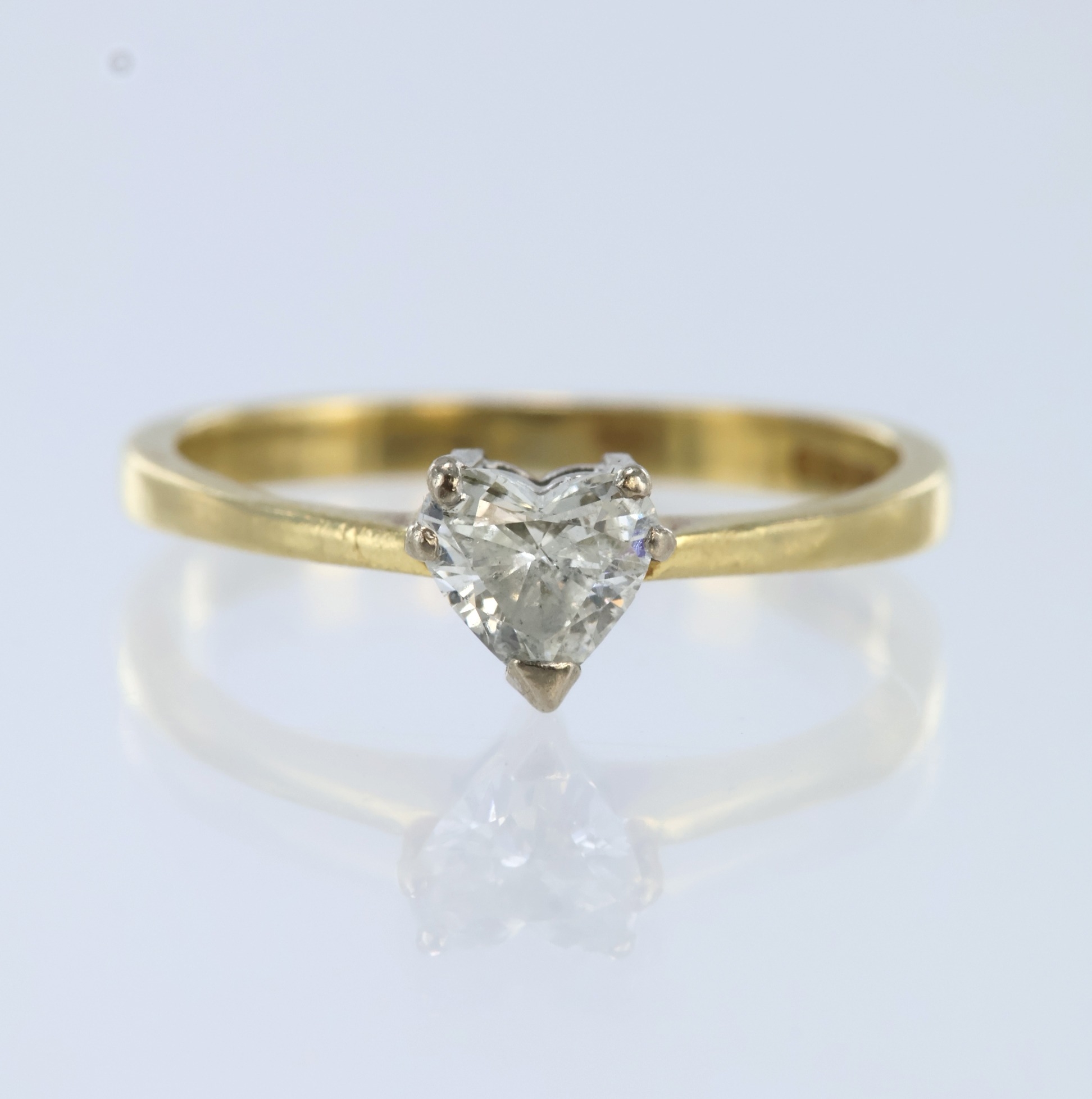 18ct yellow gold diamond solitaire ring, heart shaped diamond approx. 0.33ct, approx. colour J/K, approx. clarity I1, finger size J, weight 2.1g