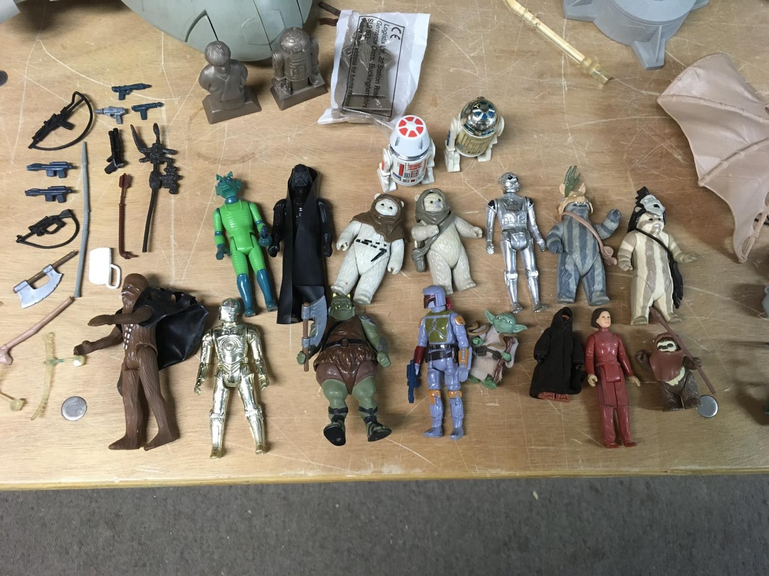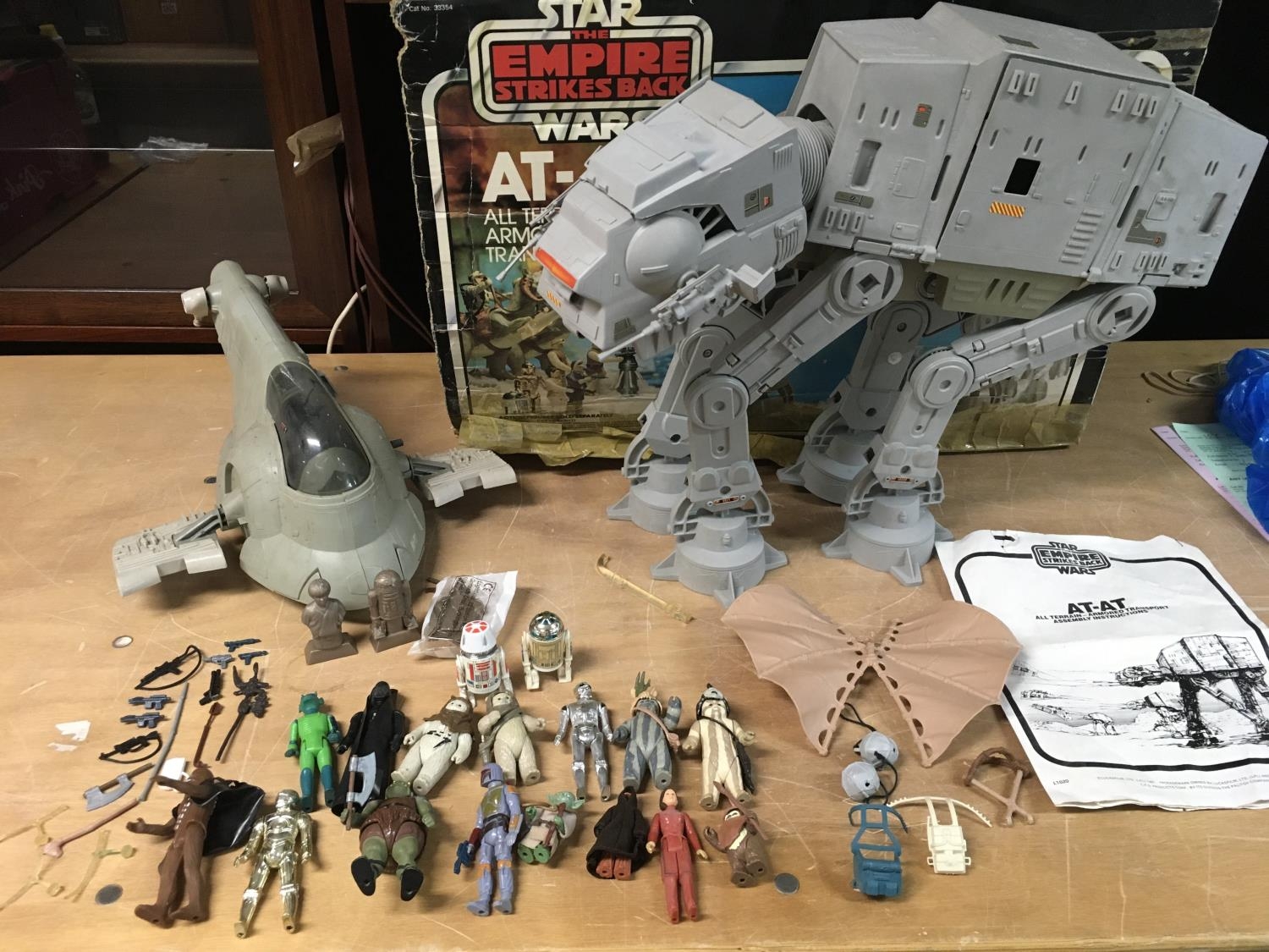 Star Wars, vintage , including Empire strikes back AT-AT Walker, in tatty box with instructions leaflet, included are chin guns etc, also a Slave I with missing parts and a collection of vintage figures with weapons