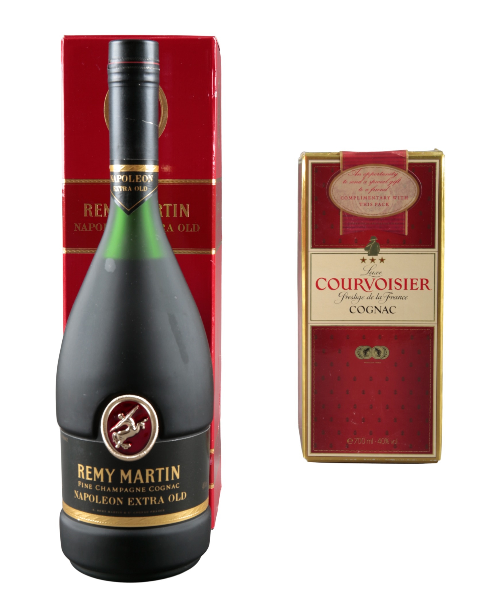 REMY MARTIN NAPOLEON EXTRA OLD COGNACone 70cl bottle, boxed; together with Courvoisier Luxe 'Prestige de la France' Cognac, one 70cl bottle, boxed (2)