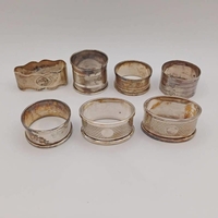 CASED PAIR OF SILVER OCTAGONAL NAPKIN RINGS BY WALKER & HALL, SHEFFIELD 1933 & BOXED SILVER NAPKIN RING - 74G WEIGHABLE