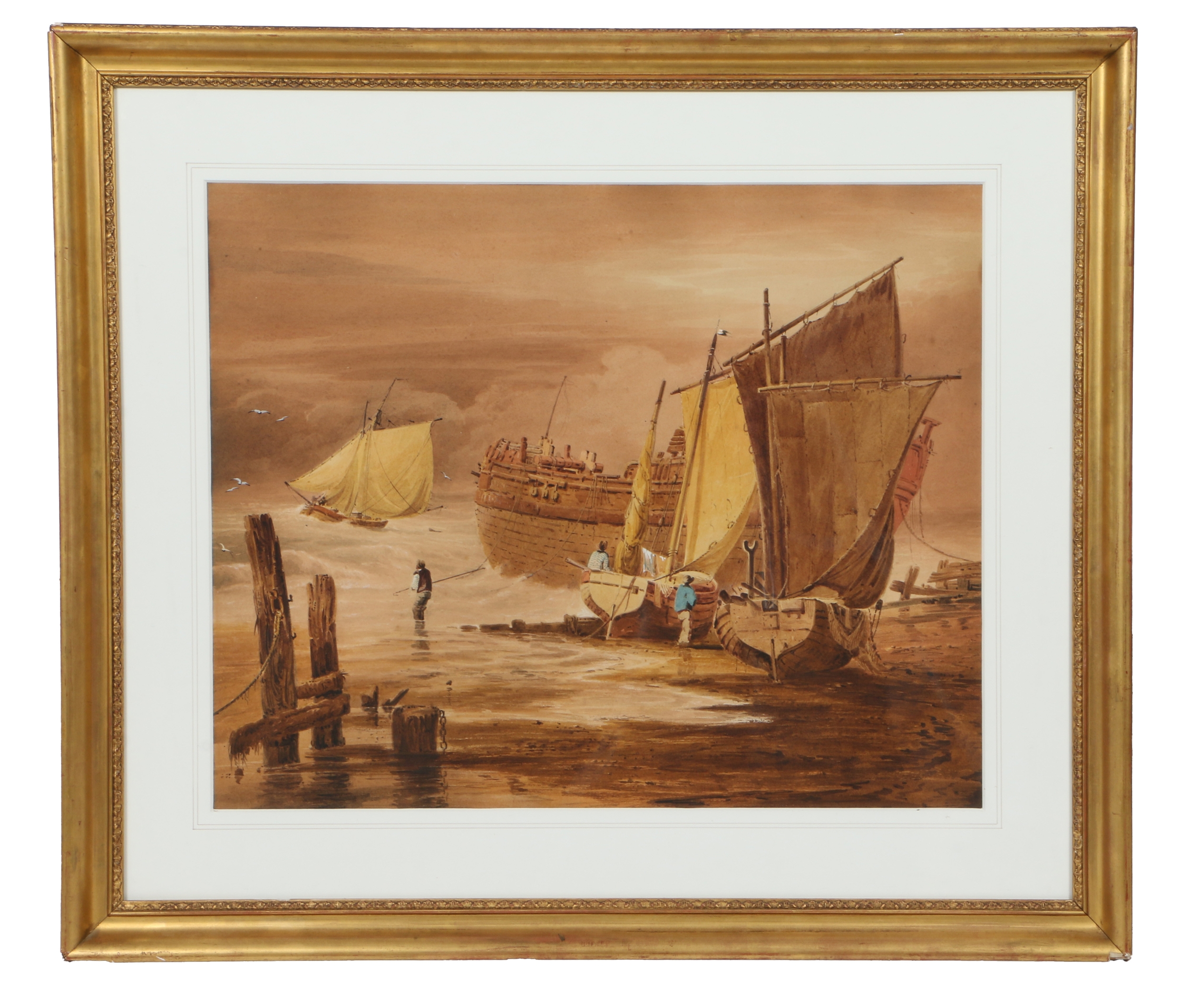 JOHN THIRTLE (BRITISH, 1777-1839). "Fishing Boat, Storm Coming"