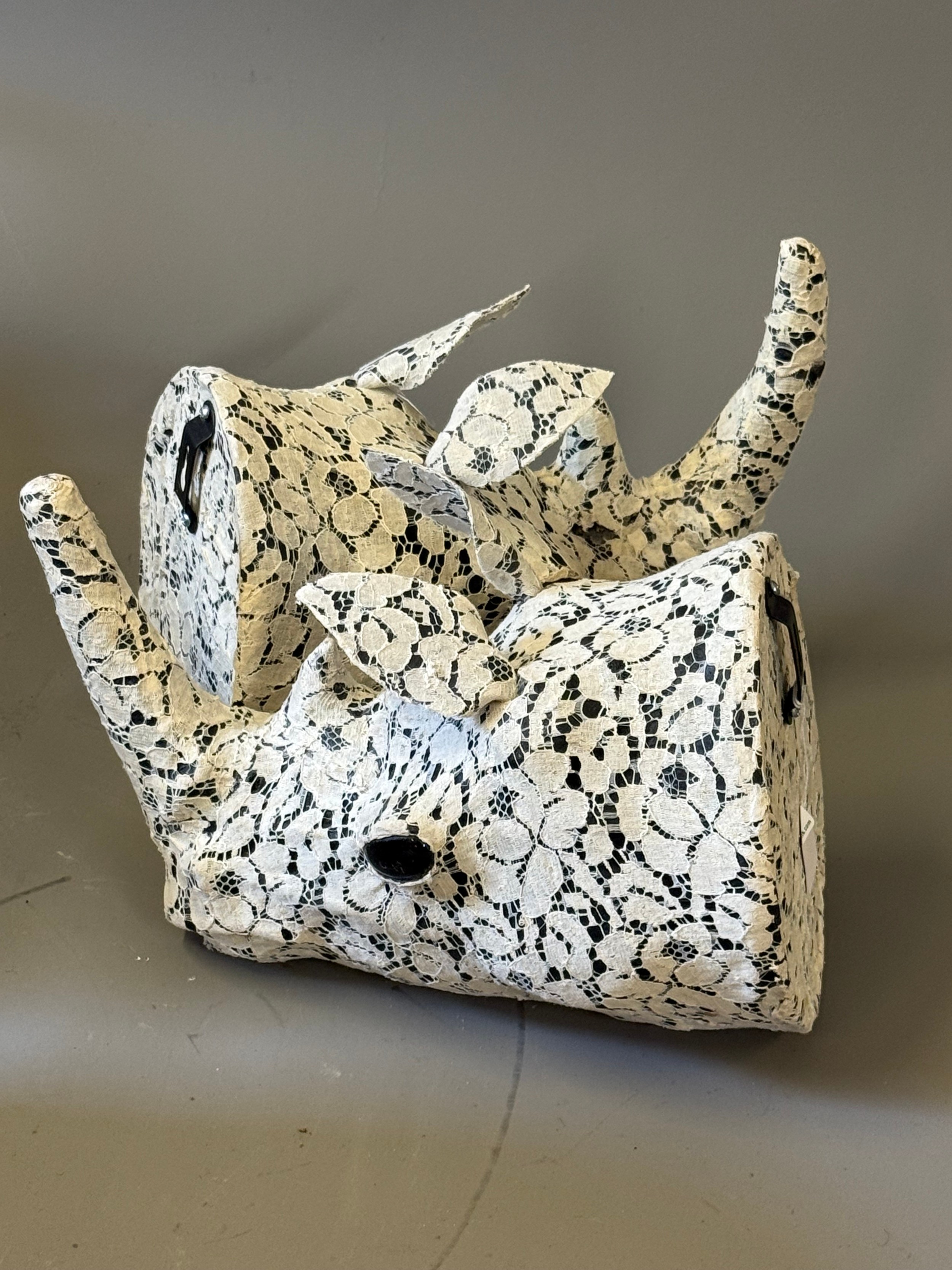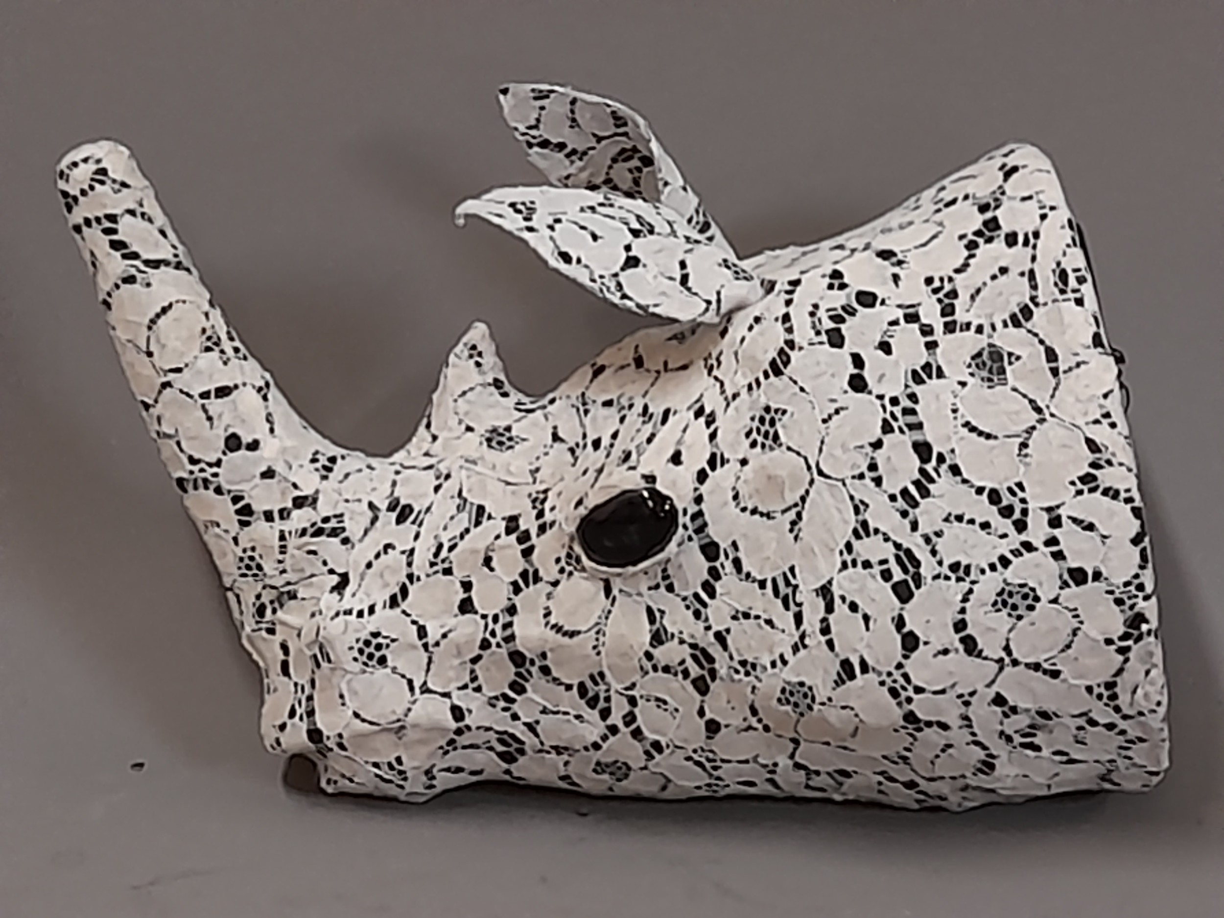 Decorative Lace covered Rhino Head for wall mounting, 30cm long x 2