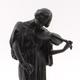 Patinated bronze figurine in flowing dress playing the violin, 27cm high
