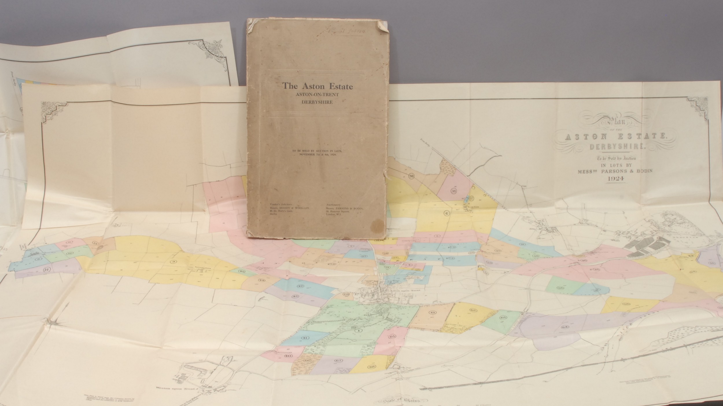 Derbyshire History - The English Country House and Estates - an auction catalogue, The Aston Estate, Aston-on-Trent, Derbyshire, November 7th & 8th 1924, auctioneers Parsons & Bodin, London, solicitors Moody & Woolley, Derby, plans and particulars en suite