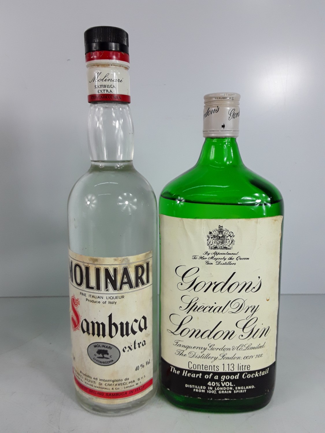 Two bts,one 1.13 Litre Gordon's Special Dry Gin,40%,1980s and one bt Molinari Sambuca Extra,700,40%,1990s