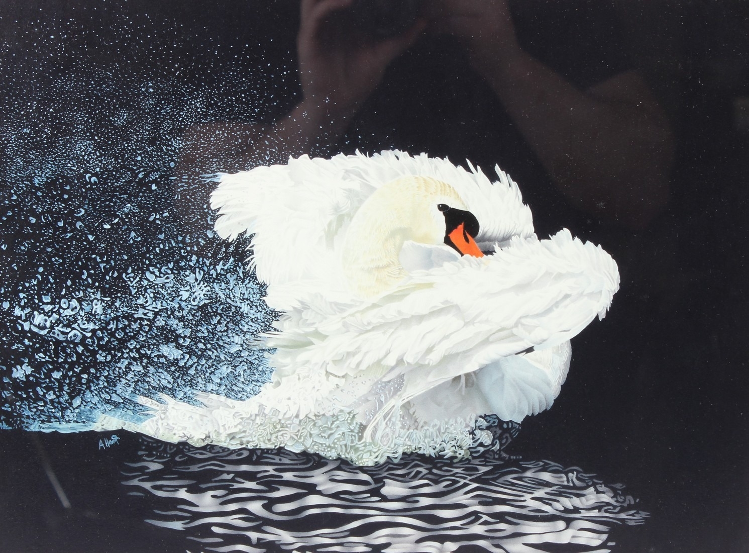 AURIOL ANNETTE HART (d.2009) Mute swan gouache and watercolour signed 28 x 38cm