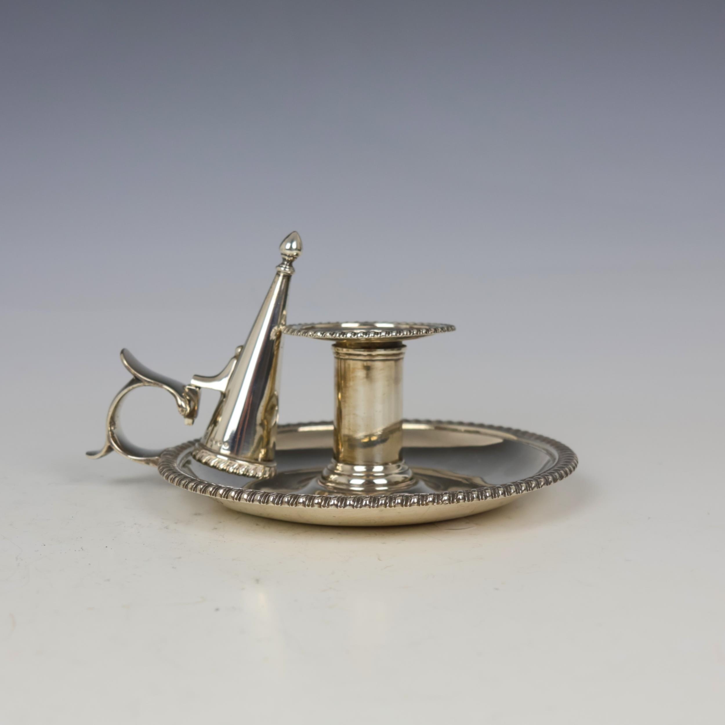 A Victorian silver chamber stick stand, R&S Garrard & Co, London 1883, of typical form with gadrooned border leading to circular base and conforming candle snuffer, stamped 'Garrards Panton Street, London' 15cm wide, gross weight 13ozt