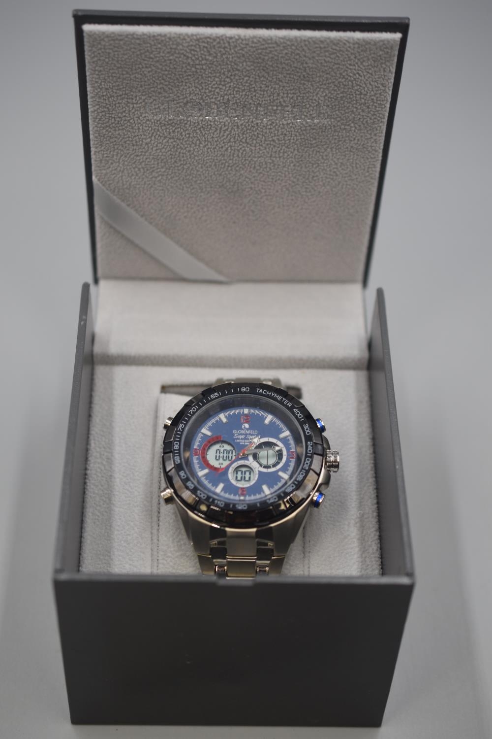 New Globenfeld Gent's Watch Complete with Case and Paperwork (Working When tested)
