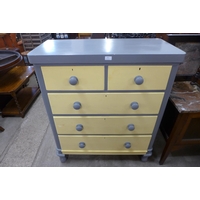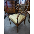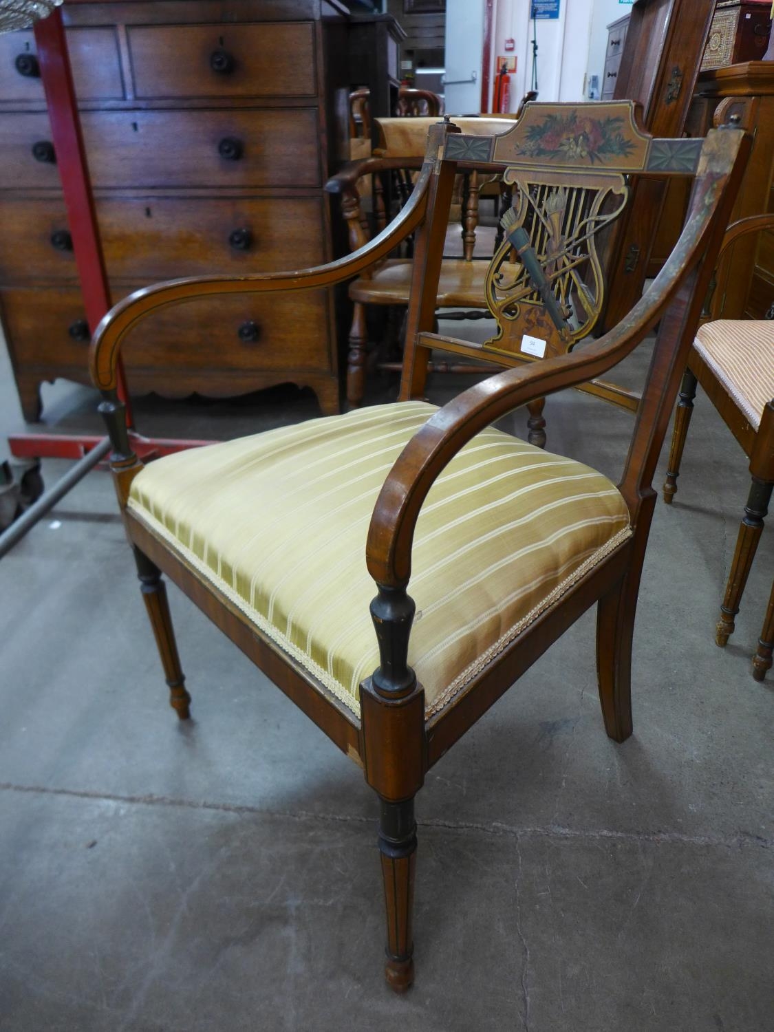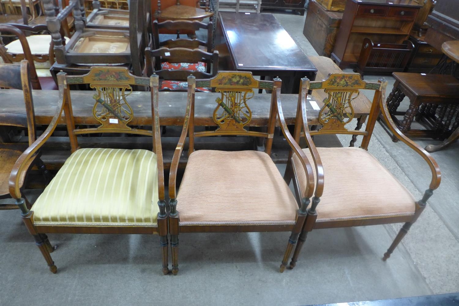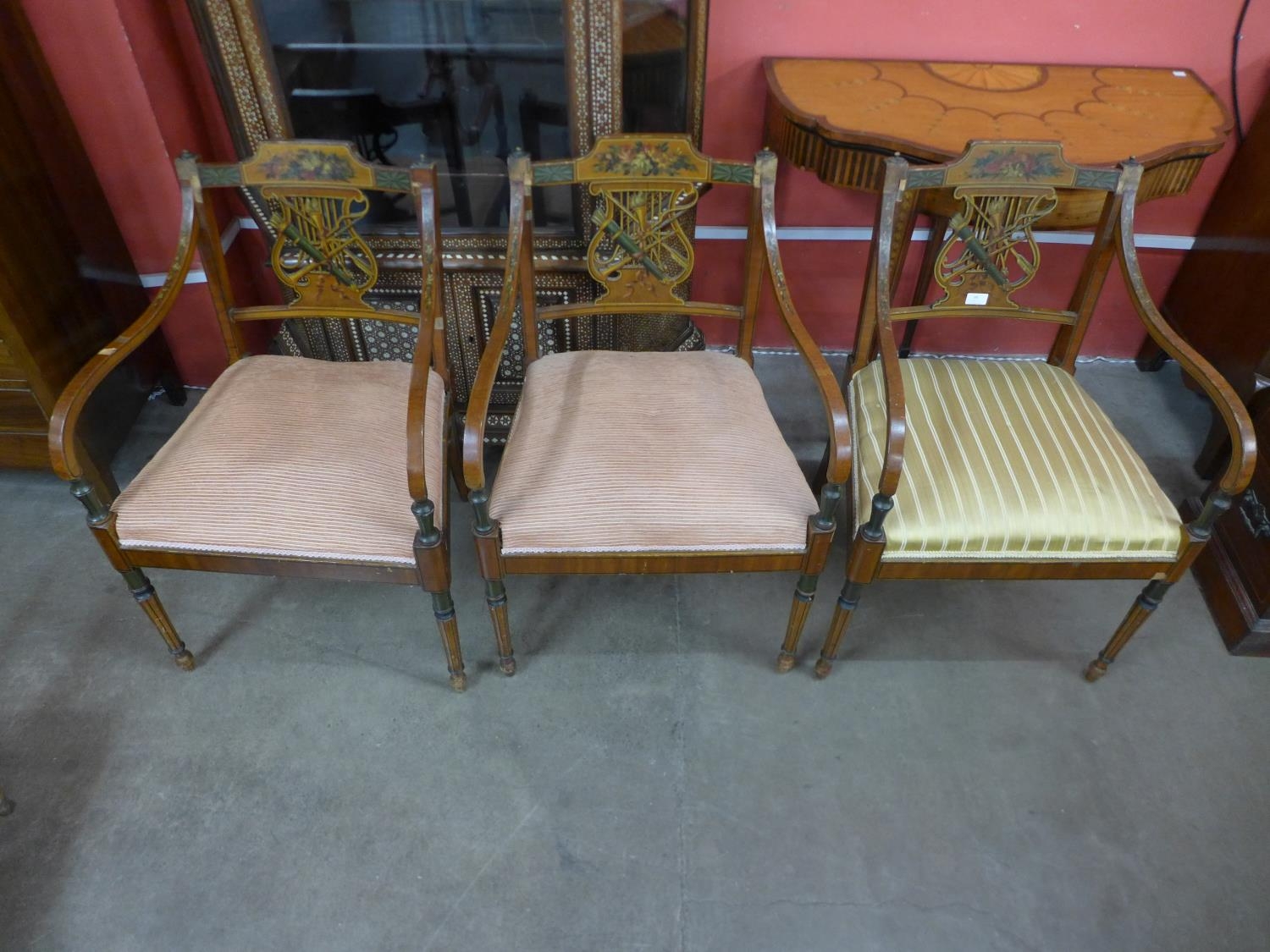 A set of three 19th Century Sheraton style painted satinwood elbow chairs