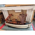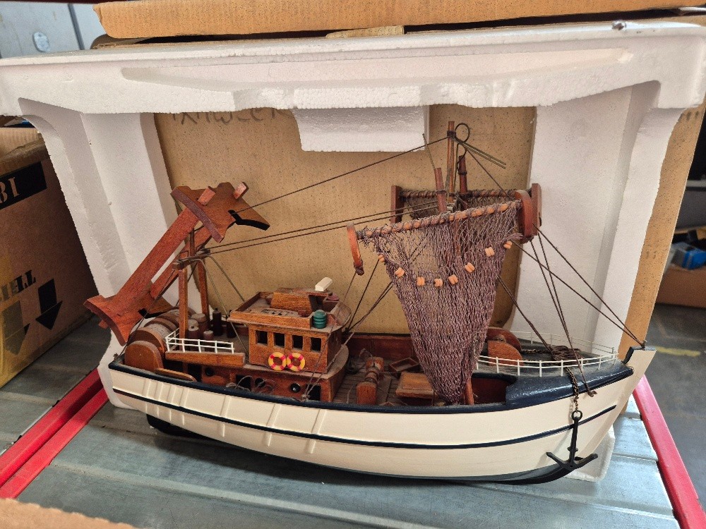 A boxed model of a fishing trawler