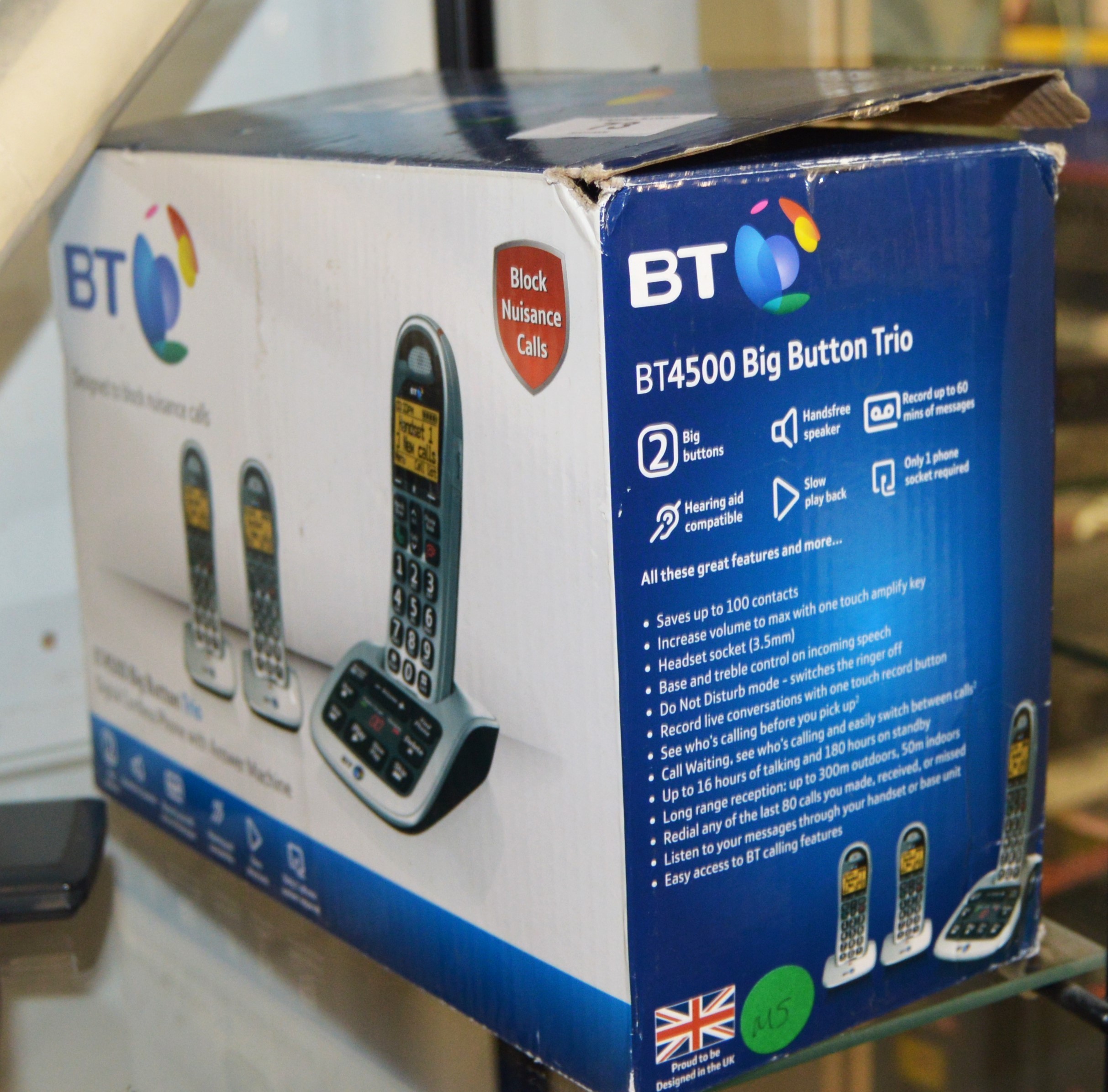Boxed British Telecon BT4500 Big Button Trio of Telephones, Digital Cordless with Answer Machine designed to Block Nuisance Calls