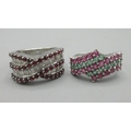 9ct white gold ring set with ruby and emerald, stamped 375, size N, 9ct white gold ring set with ruby and diamond, stamped 375, size O, 12.6g