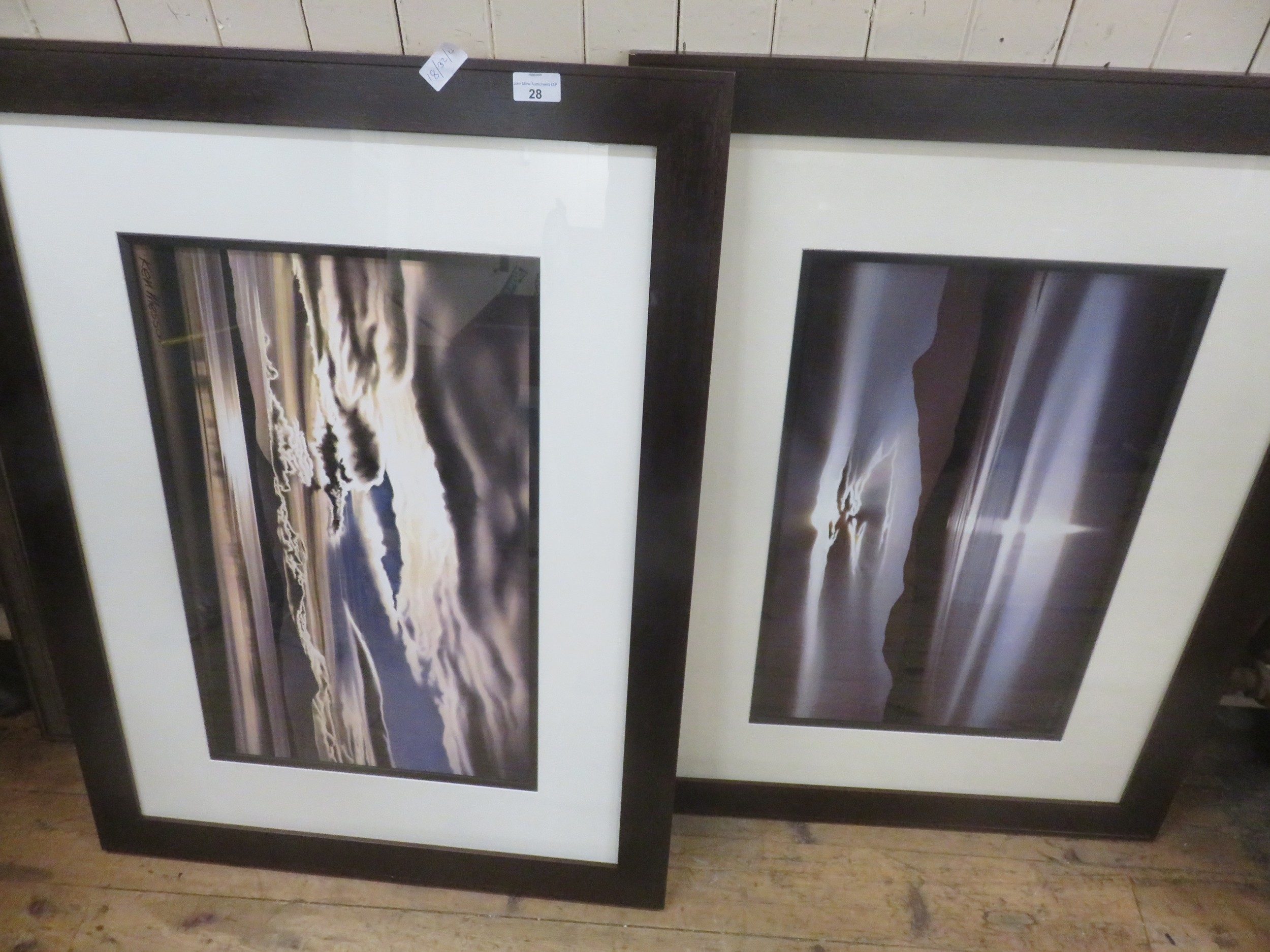 Two Large Framed Pictures - Water and Mountains Scenes - Ken Messom