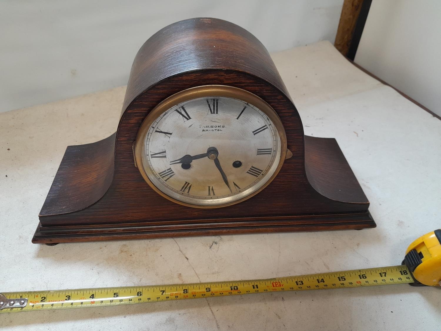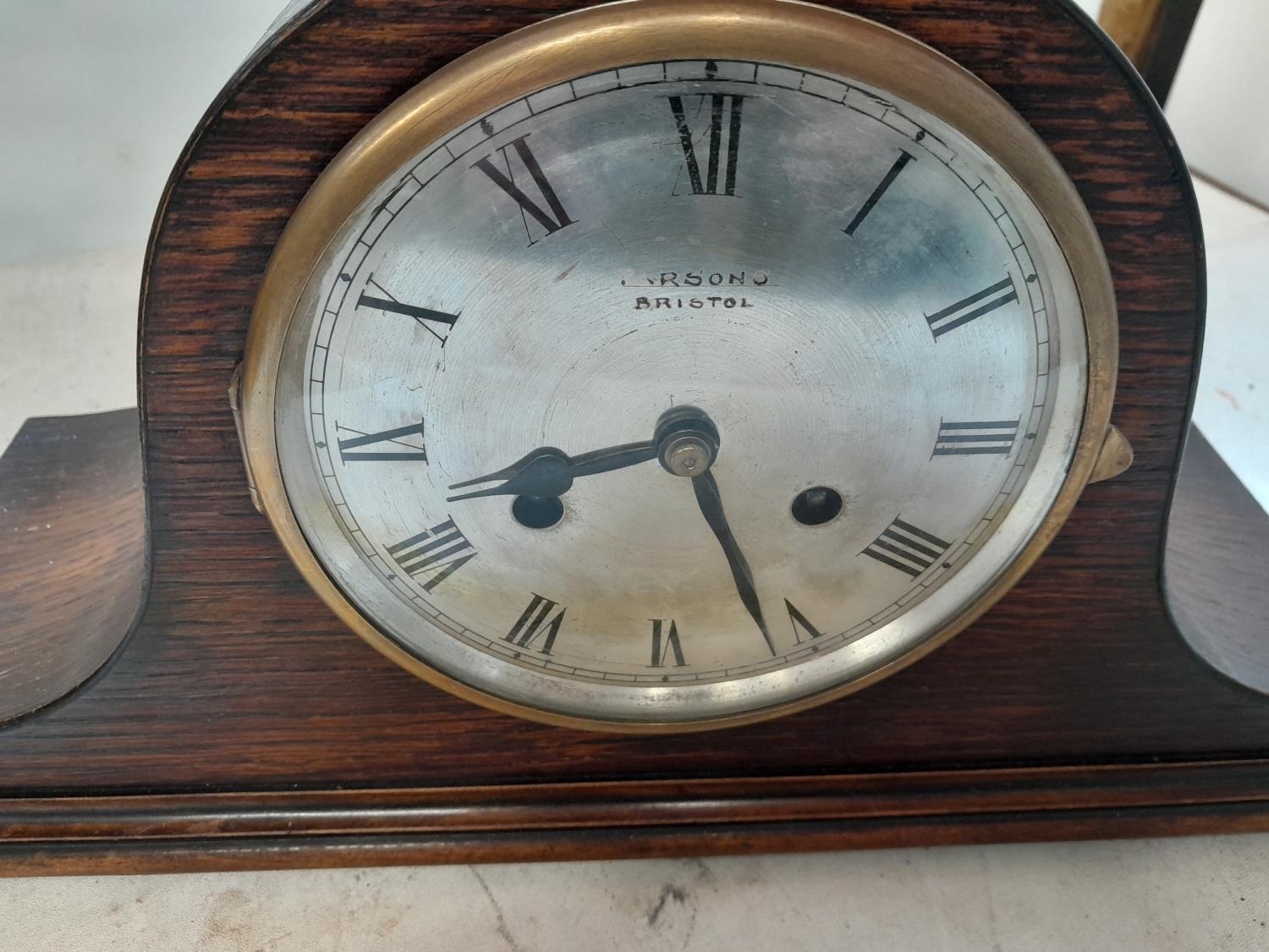Vintage oak case striking mantle clock