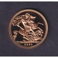 UK 1981 gold full Proof Sovereign, boxed with CoA