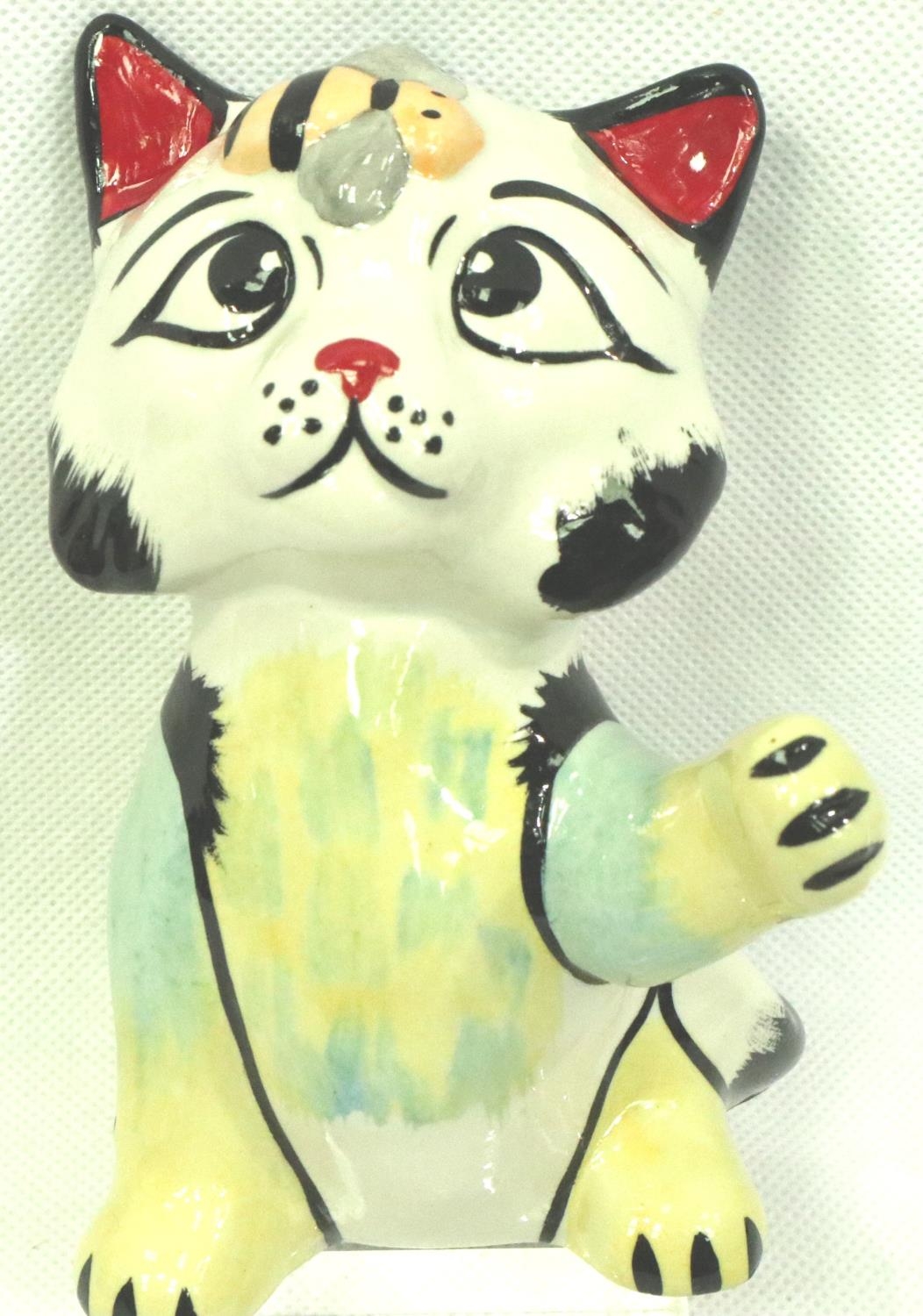 Lorna Bailey Cat and Bee, H: 12 cm. No cracks, chips or visible restoration. P&P Group 1 (£14+VAT for the first lot and £1+VAT for subsequent lots)