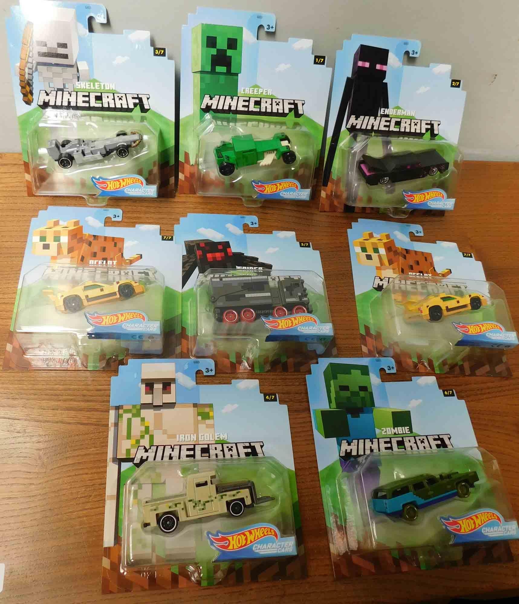 8x Minecraft Hot Wheels boxed vehicles - complete set