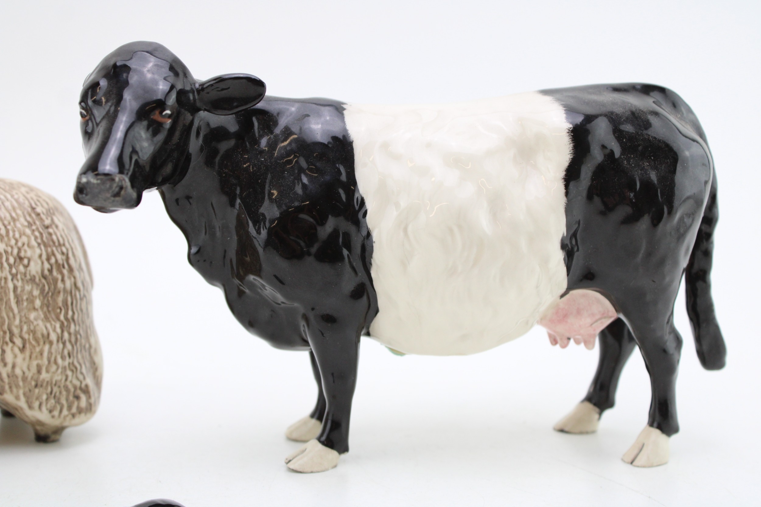 Beswick Wensleydale Sheep with a Belted Galloway Cow (2 - ear af).