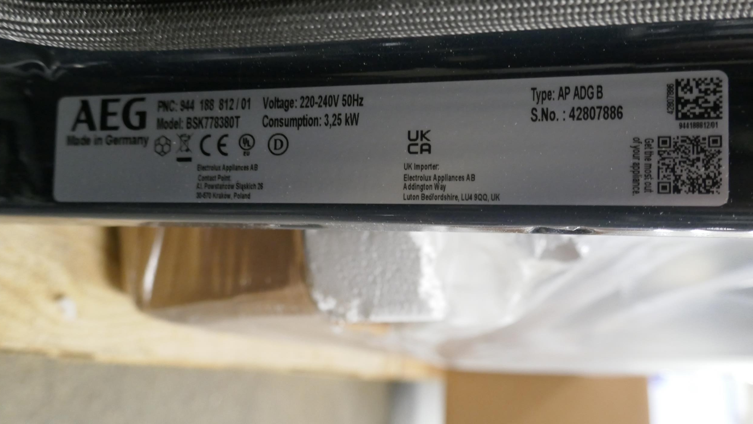 An AEG matt black Pyrolytic single oven with Steamcrisp (607-120) *This lot is subject to VAT
