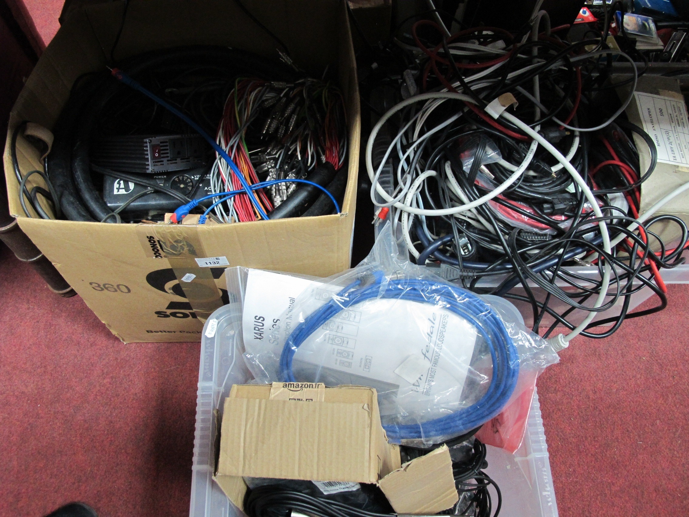 Electrical Leads, remotes, components, etc, untested, sold for parts only:- Three Boxes.