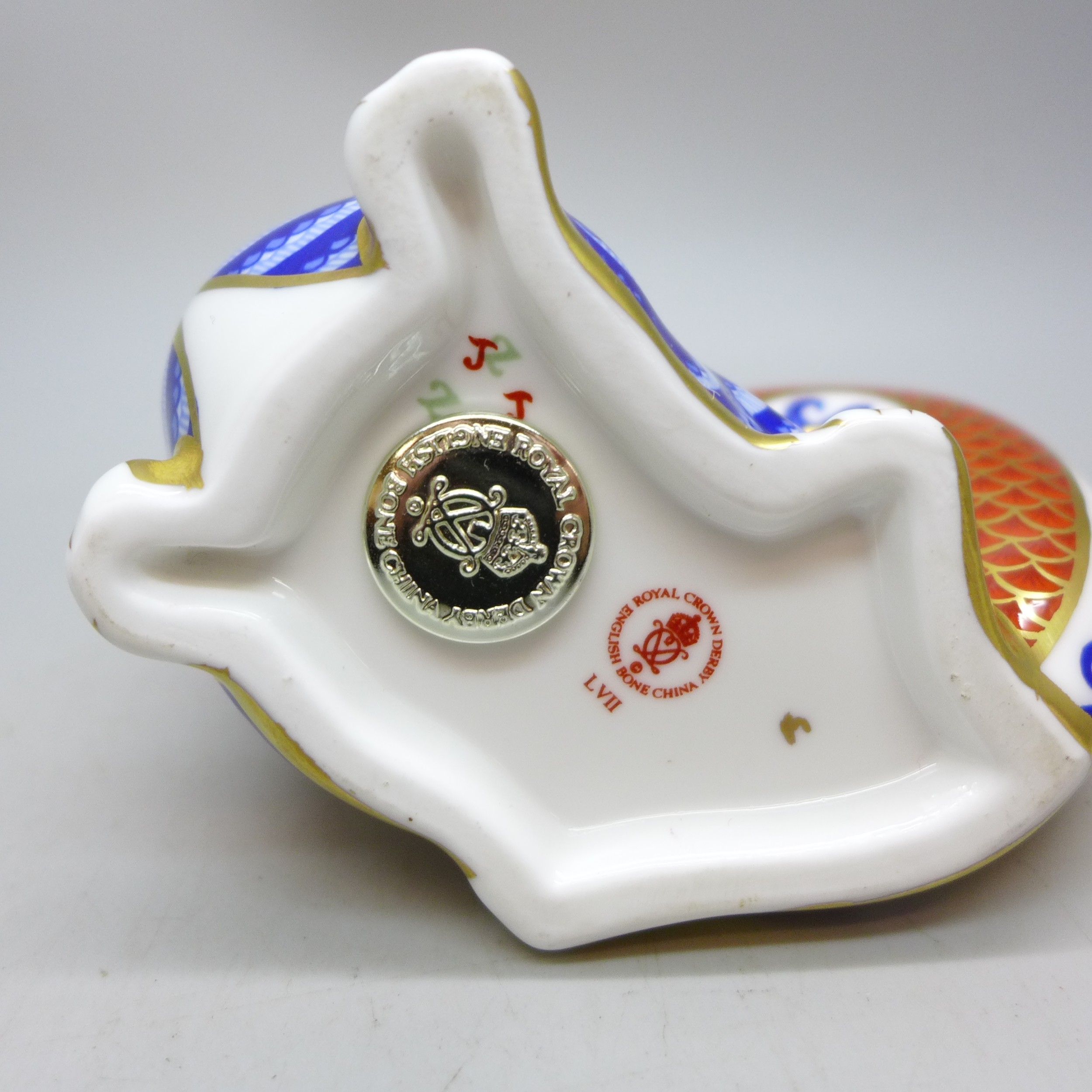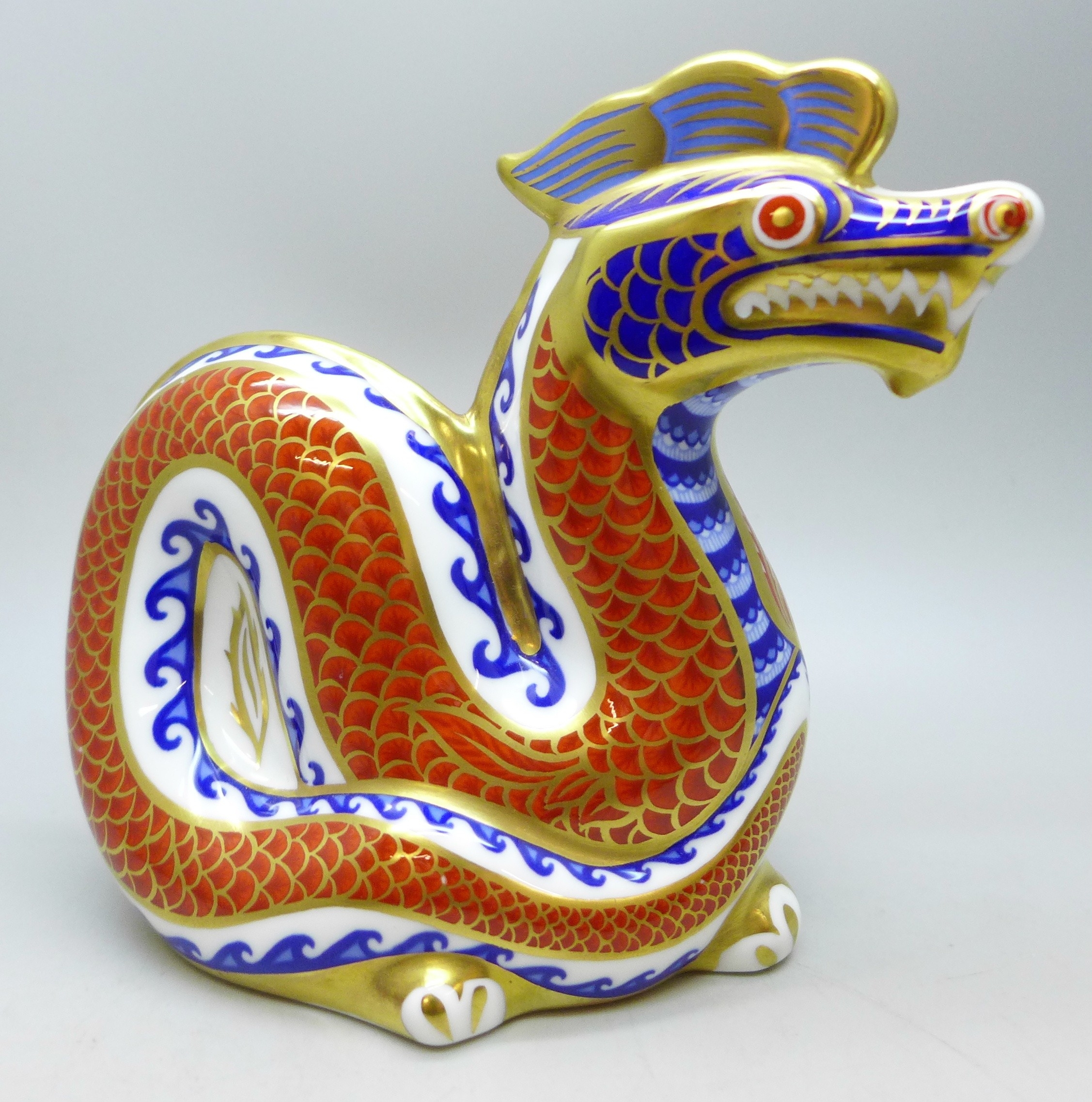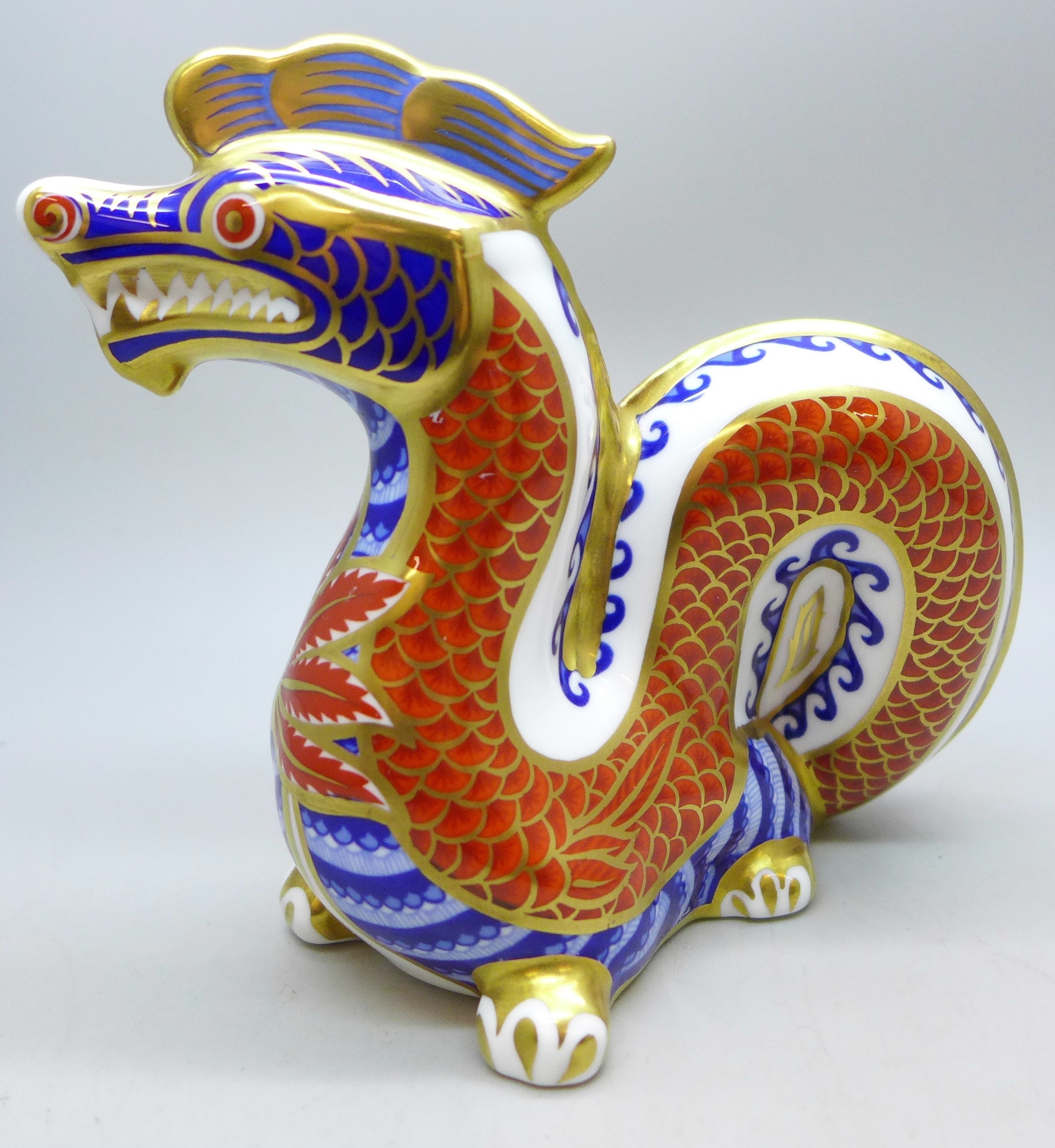 A Royal Crown Derby dragon paperweight figure with stopper