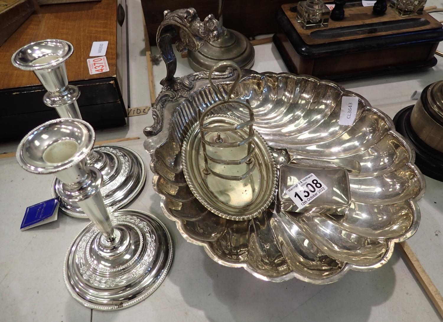 Mixed silver plate including a shell form bowl. Not available for in-house P&P