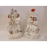 Two 19th century Staffordshire figures of David Garrick as Richard III, dressed in character seated in a tent, the taller 8¼' high