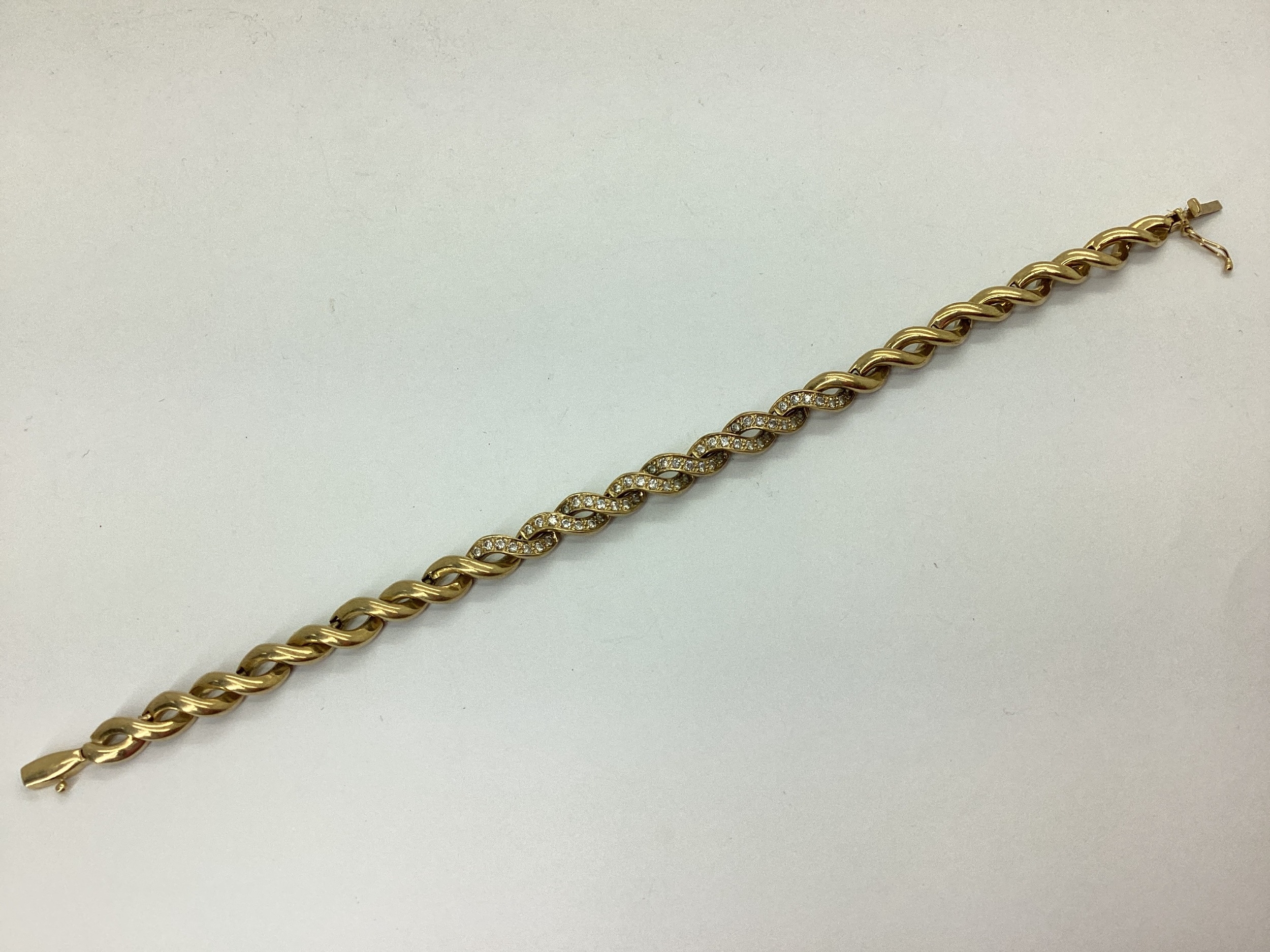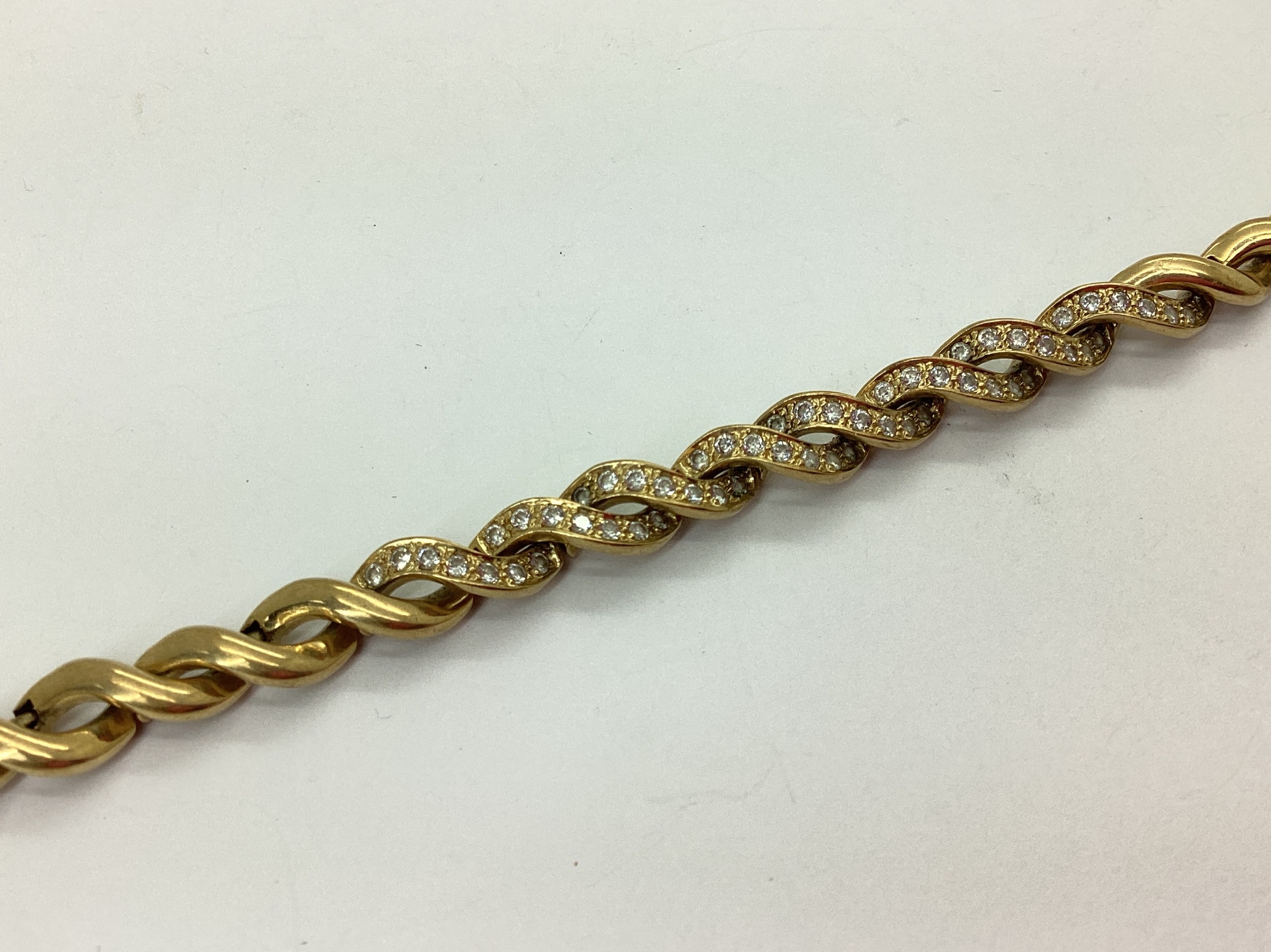 A Fancy Twist Style Bracelet, with inset highlights, to snap clasp, stamped "375" "CZ", 19cm long (12.2grams)