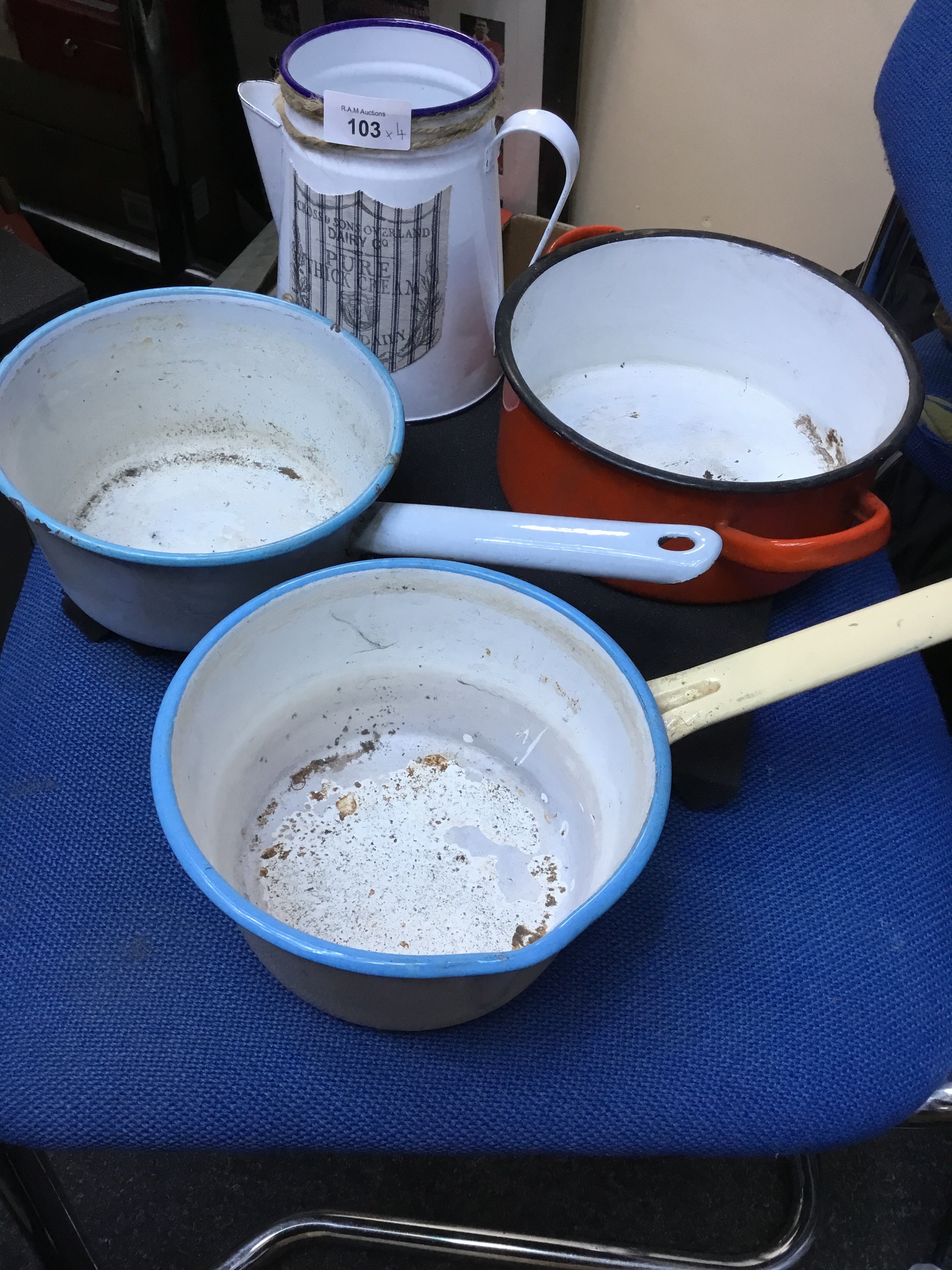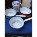 Vintage Enamel Ware Cooking Pots x3 and a Vintage Milk Jug